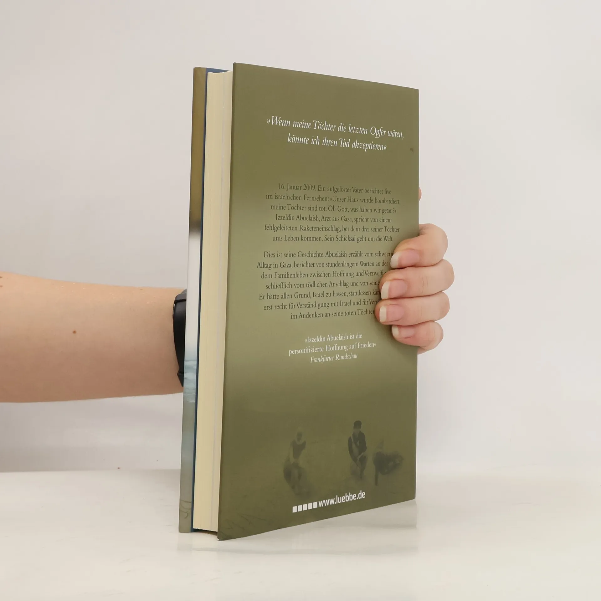 »Wenn meine Töchter die letzten Opfer wären, könnte ich ihren Tod akzeptieren.« 16. Januar 2009. Ein aufgelöster Vater berichtet live im israelischen Fernsehen: »Unser Haus wurde bombardiert, meine Töchter sind tot. Oh Gott, was haben wir getan?« Izzeldin Abuelaish, Arzt aus Gaza, berichtet über einen fehlgeleiteten Raketeneinschlag, bei dem drei seiner Töchter ums Leben kommen. Sein Schicksal geht um die Welt. Dies ist seine Geschichte. Abuelaish erzählt vom schwierigen Alltag in Gaza, berichtet von stundenlangem Warten an der Grenze, dem Familienleben zwischen Hoffnung und Verzweiflung und schließlich vom tödlichen Anschlag und von seiner Trauer. Er hätte allen Grund, Israel zu hassen, stattdessen kämpft er nun erst recht für Verständigung mit Israel und für Versöhnung - im Andenken an seine toten Töchter.