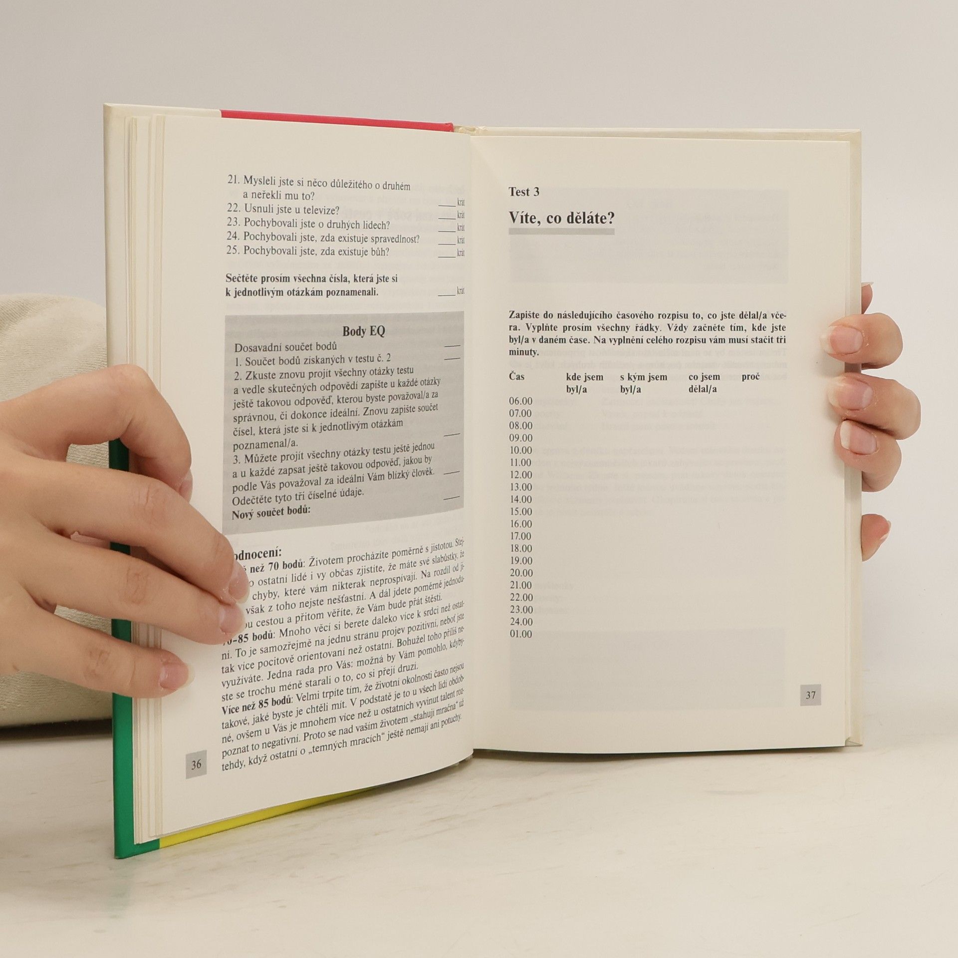 Úvod o tom, co EI znamená, jak z jejího poznání profitovat, pět aspektů EI. Dále 52 testů EI a jak s nimi pracovat (test sebevědomí, organizace vlastního života, sebemotivace, empatie, angažovanost v kontaktech s druhými lidmi).