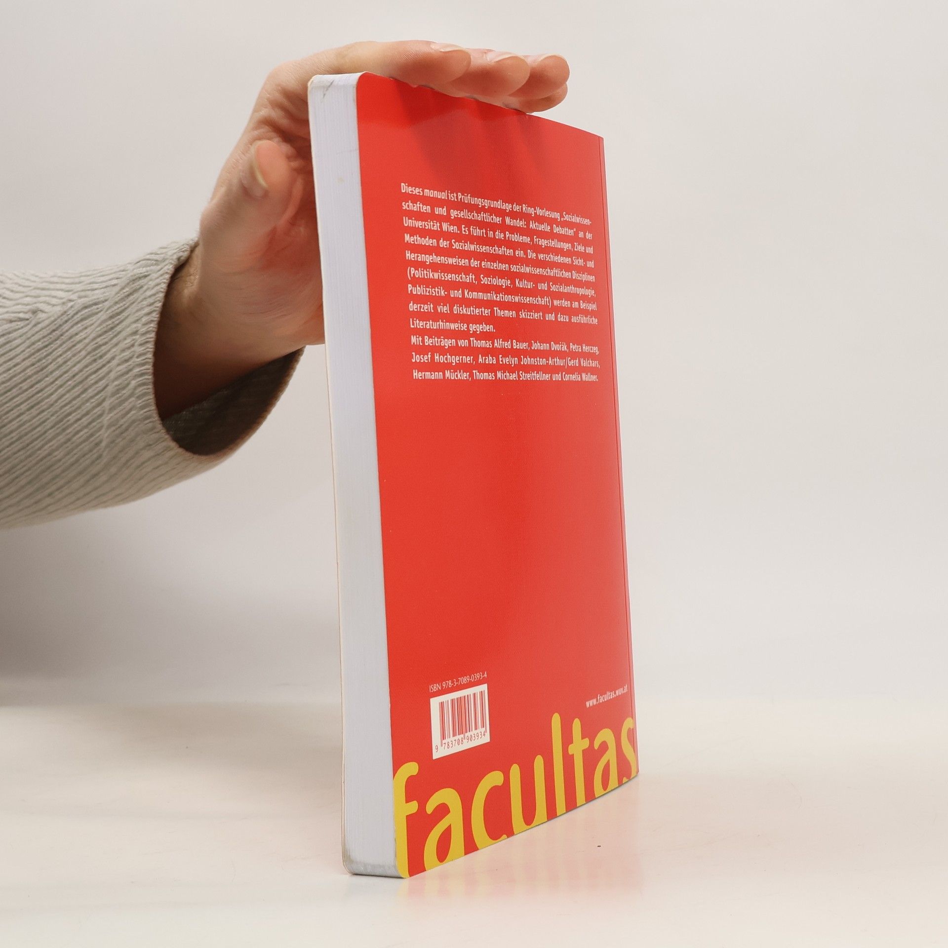 Dieses manual ist Prüfungsgrundlage der Ring-Vorlesung „Sozialwissenschaften und gesellschaftlicher Wandel: Aktuelle Debatten“ an der Universität Wien. Es führt in die Probleme, Fragestellungen, Ziele und Methoden der Sozialwissenschaften ein. Die verschiedenen Sicht- und Herangehensweisen der einzelnen sozialwissenschaftlichen Disziplinen (Politikwissenschaft, Soziologie, Kultur- und Sozialanthropologie, Publizistik- und Kommunikationswissenschaft) werden am Beispiel derzeit viel diskutierter Themen skizziert und dazu ausführliche Literaturhinweise gegeben. Mit Beiträgen von Thomas Alfred Bauer, Johann Dvořák, Petra Herczeg, Josef Hochgerner, Araba Evelyn Johnston-Arthur/Gerd Valchars, Hermann Mückler, Thomas Michael Streitfellner und Cornelia Wallner.