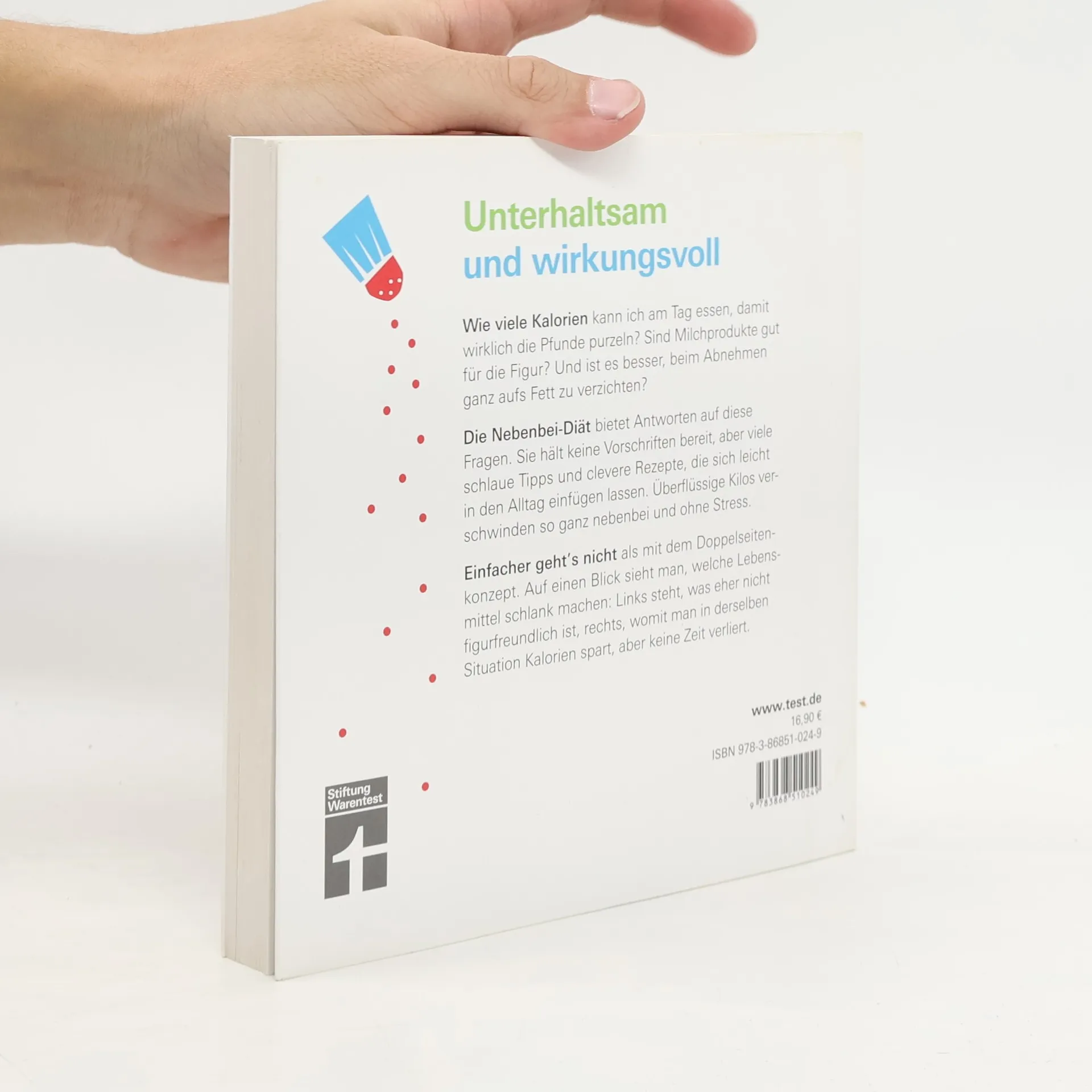 Schlauer abnehmen – ganz nebenbei. Die Nebenbei-Diät hat keine Vorschriften, aber viele schlaue Ideen zum Abnehmen im Alltag. Kleine figurfreundliche Veränderungen addieren sich und so erreicht man individuelle Ziele ohne in die Jojo-Falle zu gehen. Das Doppelseiten-Konzept ist wissenschaftlich fundiert und überraschend: links steht, was dick macht, rechts, womit man in derselben Situation Kalorien spart, aber keine Zeit verliert. Das simple Prinzip zeigt erstaunliche Wirkung, ist alltagstauglich und wissenschaftlich gesichert - nach Empfehlungen der DGE (Deutsche Gesellschaft für Ernährung e. V.).