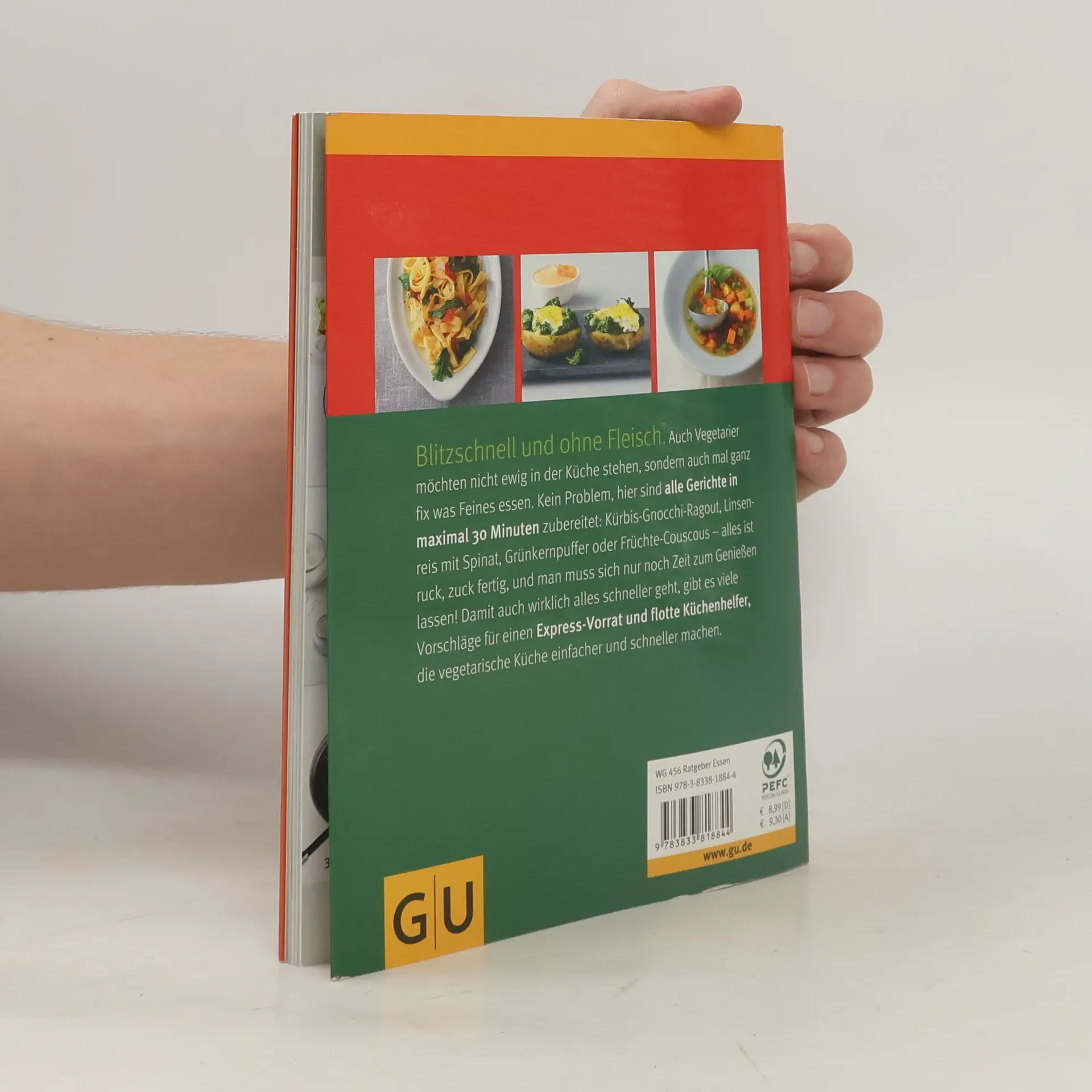 Gesund mit frischen Zutaten und dazu noch fleischlos - so stellen sich viele moderne Küche vor. Aber geht das Ganze auch ein bisschen fixer? Veggies können davon ein Lied singen: Rohkost raspeln, Getreide mahlen oder Sprossen keimen. Das ist häufig Grundlage für sicherlich fantastische Gerichte, die aber meist endlos lange dauern. Das muss nicht sein. Heute gibt es selbst im Supermarkt jede Menge Expressprodukte wie Instant-Couscous, Minuten-Polenta oder auch mal Vollkornraviolis aus der Frischetheke, die gut eingesetzt vegetarische Küche einfacher und vor allem schneller machen. Frische Zutaten dürfen dabei natürlich nicht zu kurz kommen, und so ergeben sich leckere Rezepte wie Gemüse-Tofu-Pfanne, Grünkernpuffer mit Quarkdip oder Bulgur-Trauben-Salat, die alle in maximal 30 Minuten zubereitet sind - 50 mal fleischloser Genuss von pikant bis süß. Dazu viele Tipps und Vorschläge für einen Express-Veggie-Vorrat, schnelle Gemüsesorten und zu flinken Küchengeräten.