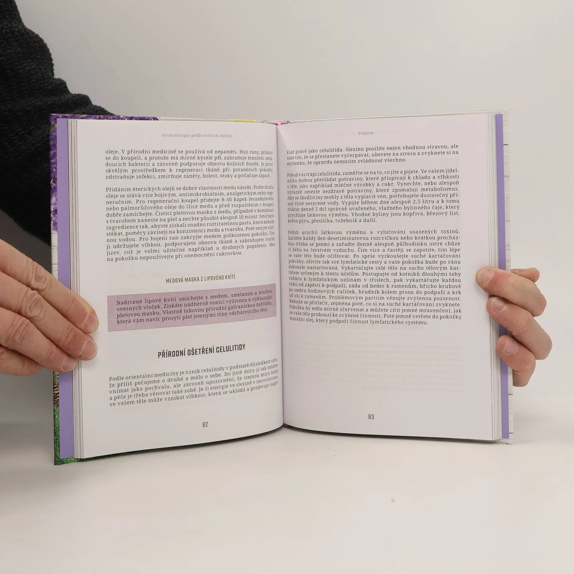 Praktické tipy, osvědčené a vyzkoušené návody a postupy aromaterapie k léčbě zdravotních potíží. Doporučení éterických olejů na konkrétní obtíže pro každé roční období. Rejstřík účinků éterických olejů s uvedenými kontraindikacemi.