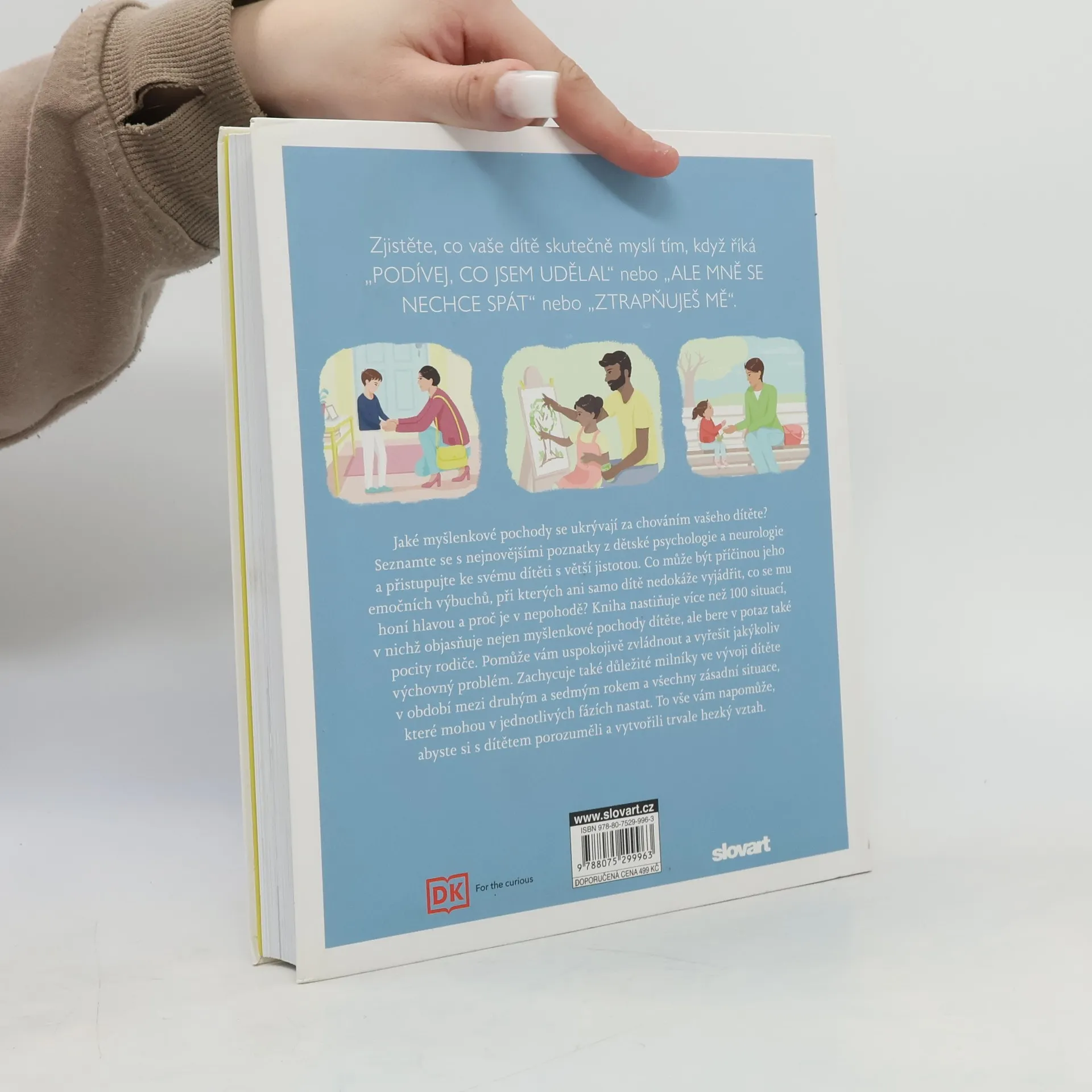 Praktická dětská psychologie pro moderní rodiče. Jaké myšlenkové pochody se ukrývají za chováním vašeho dítěte? Seznamte se s nejnovějšími poznatky z dětské psychologie a neurologie a přistupujte ke svému dítěti s nově nabytou jistotou. Zjistěte, co vaše dítě skutečně myslí tím, když říká „Podívej, co jsem udělal“ nebo „Ale mně se nechce spát“ nebo „Ztrapňuješ mě“, a co může být příčinou výbuchů, při kterých ani samo dítě nedokáže vyjádřit, co se mu honí hlavou. Kniha nastiňuje více než 100 situací a objasňuje nejenom myšlenkové pochody dítěte, ale bere v potaz také pocity rodiče. Díky tomu zvládnete uspokojivě vyřešit jakýkoliv výchovný problém. Také jsou zde zachyceny zásadní milníky ve vývoji dítěte v období mezi druhým a sedmým rokem a všechny zásadní situace, které mohou nastat. To vše vám má pomoci, abyste si s dítětem vytvořili trvale hezký vztah.