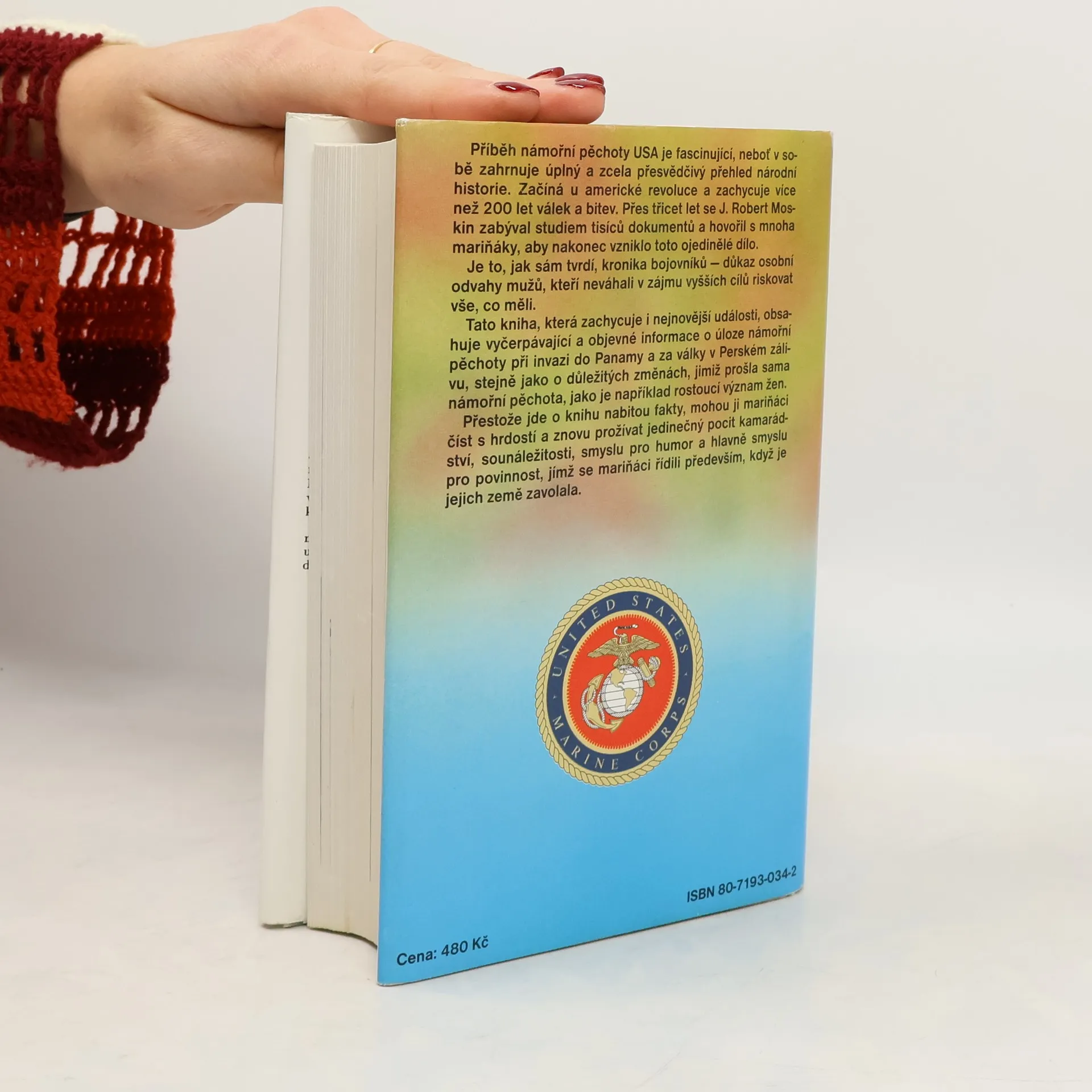 Příběh námořní pěchoty USA je fascinující, neboť v sobě zahrnuje úplný a zcela přesvědčivý přehled národní historie. Začíná u americké revoluce a zachycuje více než 200 let válek a bitev. Přes třicet let se J. Robert Moskin zabýval studiem tisíců dokumentů a hovořil s mnoha mariňáky, aby nakonec vzniklo toto ojedinělé dílo. Je to, jak sám tvrdí, kronika bojovníků - důkaz osobní odvahy mužů, kteří neváhali v zájmu vyšších cílů riskovat vše, co měli. Tato kniha, která zachycuje i nejnovější události, obsahuje vyčerpávající a objevné informace o úloze námořní pěchoty při invazi do Panamy a za války v Perském zálivu, stejně jako o důležitých změnách, jimiž prošla sama námořní pěchota, jako je například rostoucí význam žen. Přestože jde o knihu nabitou fakty, mohou ji mariňáci číst s hrdostí a znovu prožívat jedinečný pocit kamarádství, sounáležitosti, smyslu pro humor a hlavně smyslu pro povinnost, jímž se mariňáci řídili především, když je jejich země zavolala....