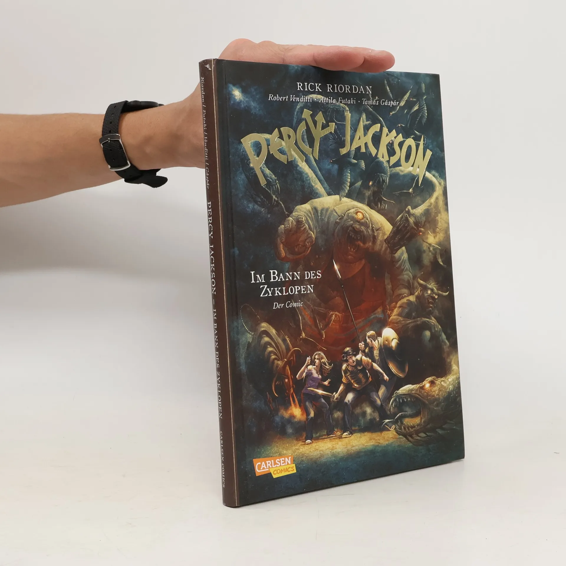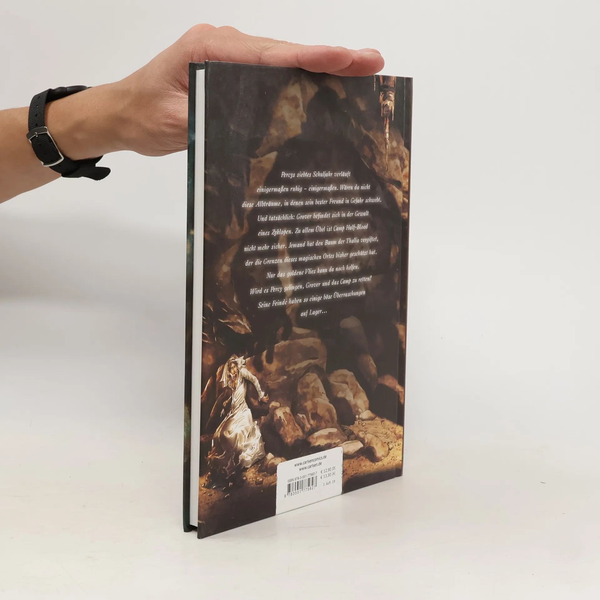 Unheilvolle Ereignisse im Camp Half-Blood Percys siebtes Schuljahr verläuft einigermaßen ruhig - einigermaßen. Wenn da nicht diese Albträume wären, in denen sein bester Freund in Gefahr schwebt. Und tatsächlich: Grover befindet sich in der Gewalt eines Zyklopen. Zu allem Übel ist Camp Half-Blood nicht mehr sicher: Jemand hat den Baum der Thalia vergiftet, der die Grenzen dieses magischen Ortes bisher geschützt hat. Nur das goldene Vlies kann da noch helfen. Wird es Percy gelingen, Grover und das Camp zu retten? Das dürfte für einen Halbgott wie ihn eigentlich kein Problem sein. Doch seine Feinde haben noch einige böse Überraschungen auf Lager. Die Percy-Jackson-Reihe erstmalig als Comic: Band 1: Diebe im Olymp Band 2: Im Bann des Zyklopen Band 3: Der Fluch des Titanen Band 4: Die Schlacht um das Labyrinth Band 5: Die letzte Göttin ***Der Jugendbuch-Bestseller mit unzähligen Giganten, Titanen, Ungeheuern, Halbgöttern und Göttern der griechischen Mythologie: Ideal zum Verschenken an Mädchen und Jungen ab 12 Jahren***