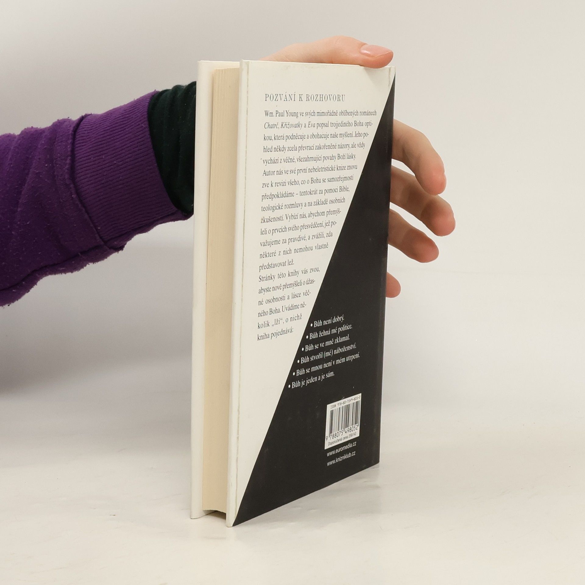 Slavný bestsellerový romanopisec Paul Young bývá často za své názory na Boha označován za kacíře. V této knize představuje dvacet osm běžně užívaných společenských názorů na Boha, které považuje za nesprávné a které nás podle něj od jeho podstaty oddalují. S osobitým humorem a anekdotami z vlastního života zde znovu otevírá známá témata, jako jsou hřích, peklo, víra, lidská práva, politika a jiné a pomáhá nám objevit hloubku Boha skrze odlišnou perspektivu.