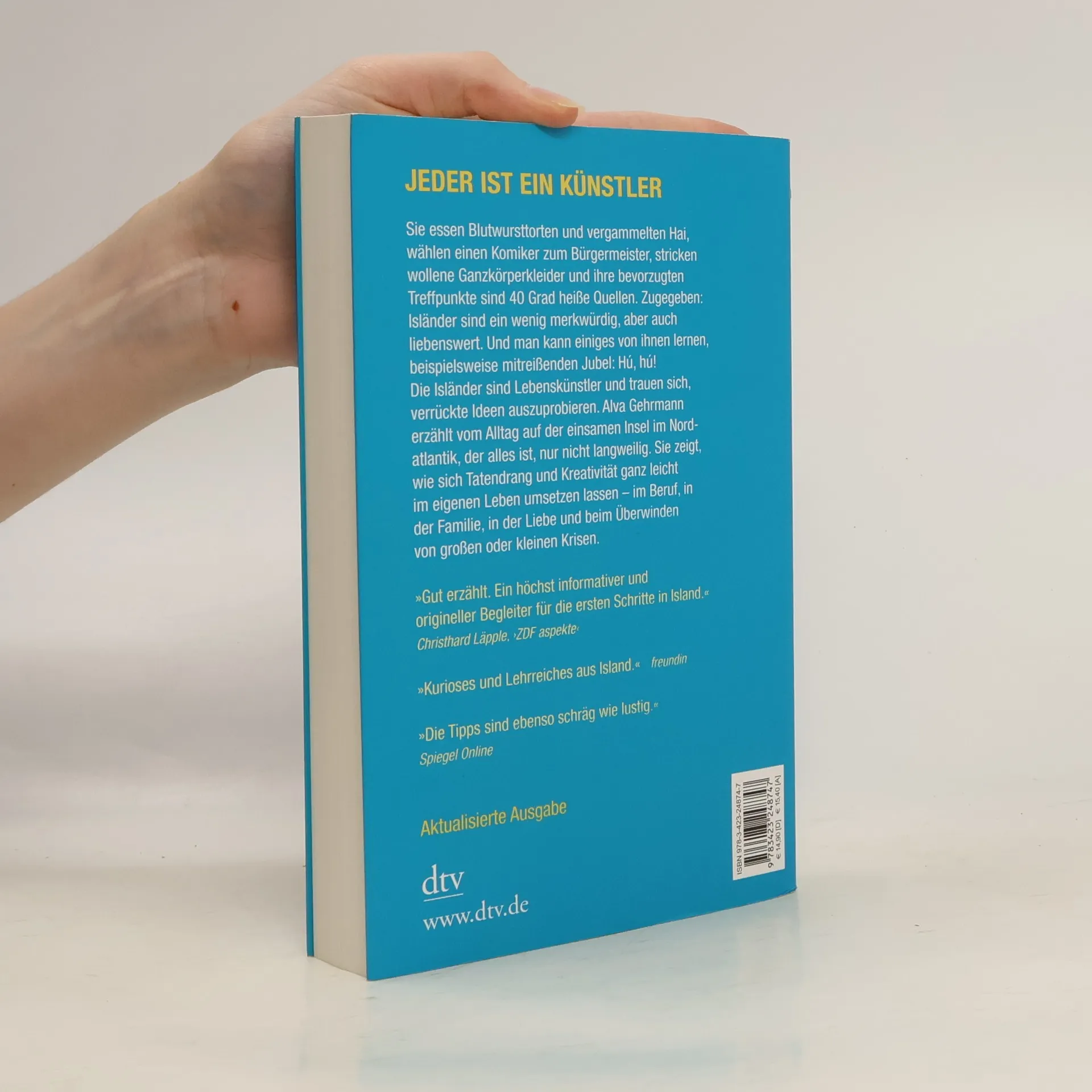 DIE SPINNEN, DIE ISLÄNDER! Sie essen Blutwursttorten und vergammelten Hai, wählen einen Komiker zum Bürgermeister, stricken wollene Ganzkörperkleider und ihre bevorzugten Treffpunkte sind 40 Grad heiße Quellen. Zugegeben: Isländer sind ein wenig merkwürdig, aber auch liebenswert. Und man kann einiges von ihnen lernen, beispielsweise bei Fußballmeisterschaften den mitreißenden Jubel: Hú, hú! Die Isländer sind Lebenskünstler und trauen sich, verrückte Ideen auszuprobieren. Alva Gehrmann erzählt in ›Alles ganz Isi‹ vom Alltag auf der einsamen Insel im Nordatlantik, der alles ist, nur nicht langweilig. Sie zeigt, wie sich Tatendrang und Kreativität ganz leicht im eigenen Leben umsetzen lassen - im Beruf, in der Familie, in der Liebe und beim Überwinden von großen oder kleinen Krisen. Lassen Sie sich von der isländischen Lebenskunst inspirieren und nehmen Sie mal „ALLES GANZ ISI“.