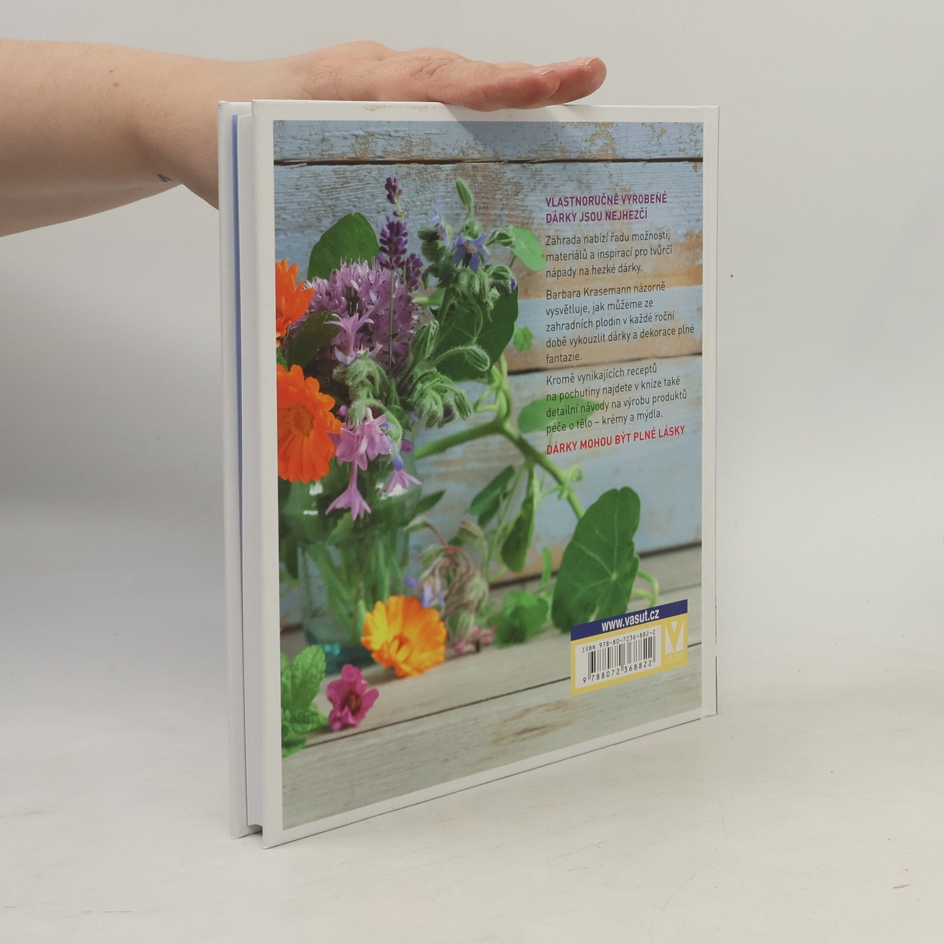 Zahrada nabízí řadu materiálů a inspirací pro hezké dárky. Ze zahradních plodin můžete v každé roční době vykouzlit dárky a dekorace plné fantazie. Na jaře zkuste aromatizované octy a oleje, v létě třeba růžový sirup nebo bezinkové víno, na podzim želé a marmelády, v zimě krémy, mýdla či koupele. Plody, listy, květy, pupeny, semena i kořeny dokážete s pomocí pečlivě popsaných receptů a fotografií v této knize proměnit v dárky, které vaše blízké zahřejí u srdce, v žaludku i na těle. Díky nim poznají, že vám na nich skutečně záleží.