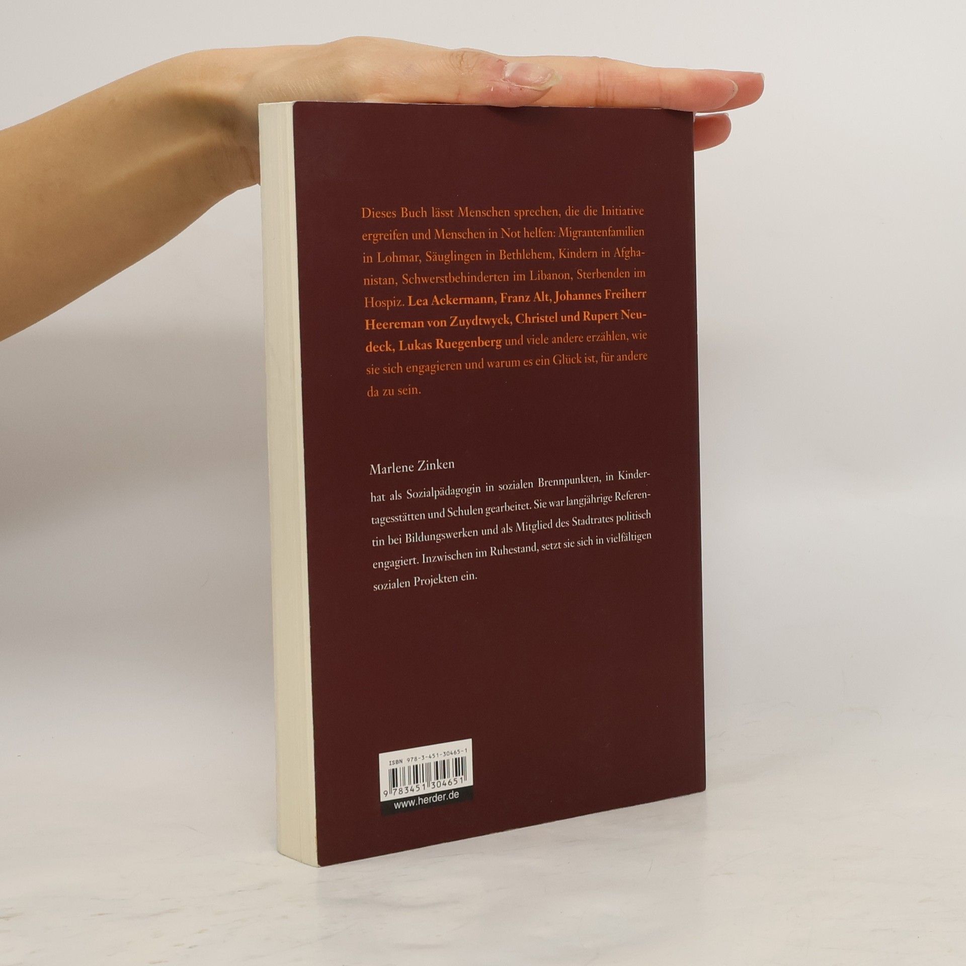 Dieses Buch lässt Menschen sprechen, die die Initiative ergreifen und Menschen in Not helfen: Jugendlichen im Kölner Brennpunktviertel, Säuglingen in Bethlehem, Kindern in Afghanistan, Schwerstbehinderten im Libanon, Sterbenden im Hospiz. Lea Ackermann, Franz Alt, Johannes Freiherr von Heeremann, Christel und Rupert Neudeck, Lukas Ruegenberg und viele andere erzählen, wie sie sich engagieren und warum es ein Glück ist, für andere da zu sein.