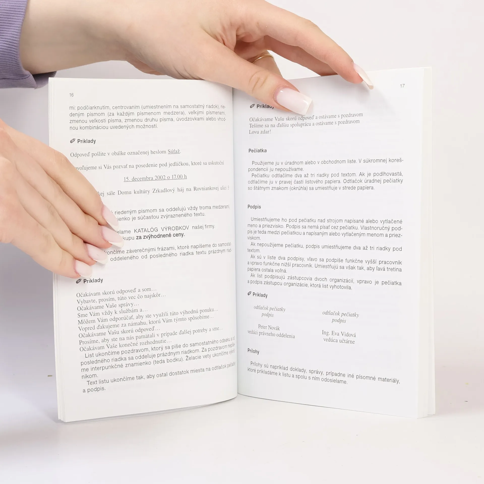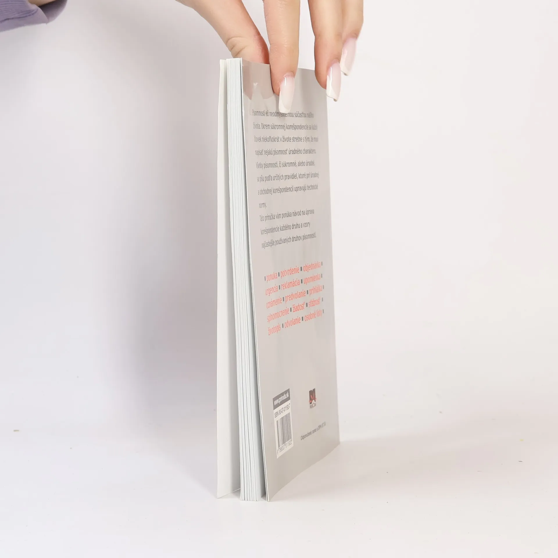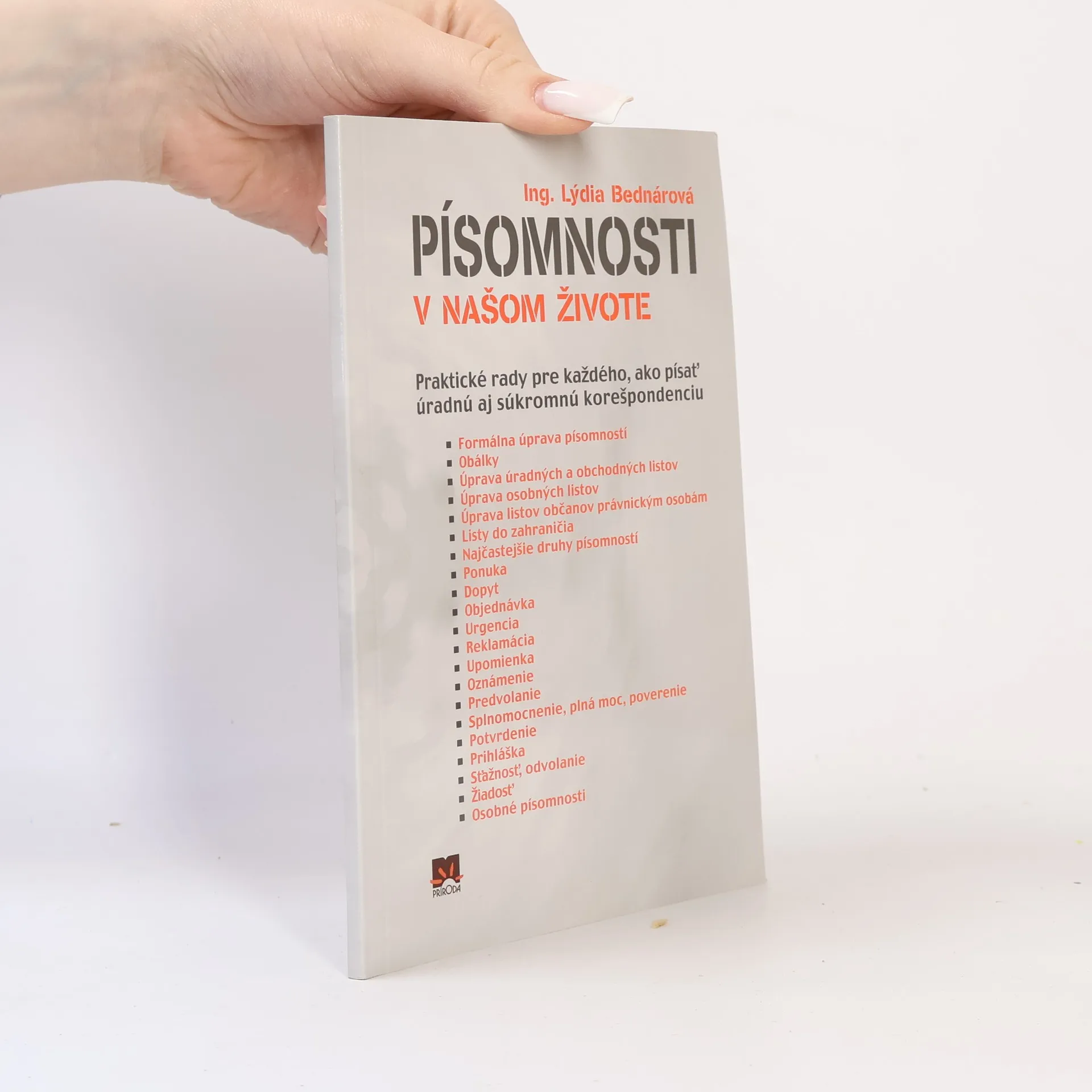 Prakrické rady pre každého, ako písať úradnú aj súkromnú korešpondenciu Písomnosti sú neodmysliteľnou súčasťou nášho života. Okrem súkromnej korešpondencie sa každý človek niekoľkokrát v živote stretne s tým, že musí napísať nejakú písomnosť úradného charakteru. Všetky písomnosti, či súkromné, alebo úradné, sa píšu podľa určitých pravidiel, ktoré pri úradnej a obchodnej korešpondencii upravujú technické normy. Táto príručka vám ponúka návod na úpravu korešpondencie každého druhu a vzory najčastejšie používaných druhov písomností. Prvé vydanie.