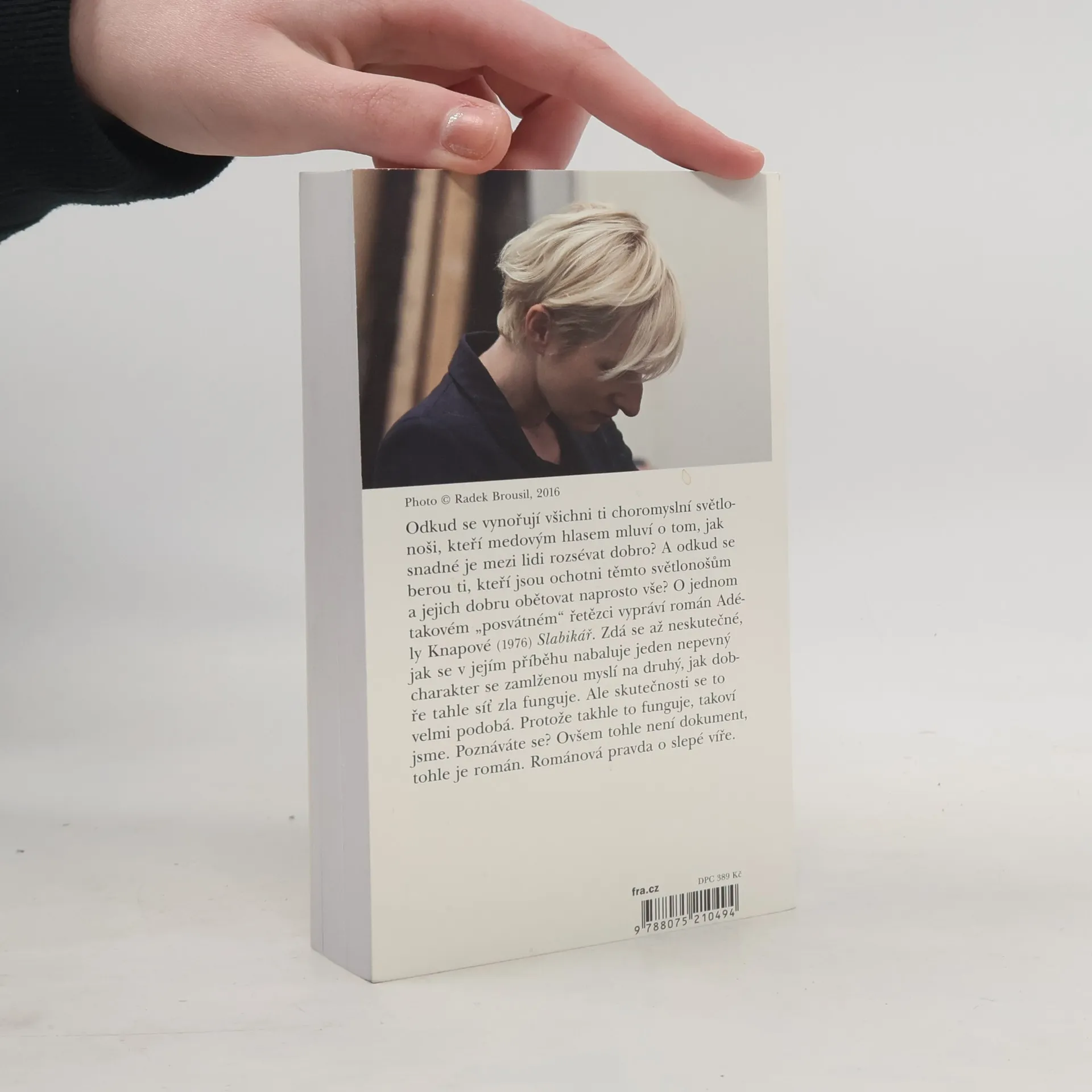 Odkud se vynořují všichni ti choromyslní světlonoši, kteří medovým hlasem mluví o tom, jak snadné je mezi lidi rozsévat dobro? A odkud se berou ti, kteří jsou ochotni těmto světlonošům a jejich dobru obětovat naprosto vše? O jednom takovém „posvátném“ řetězci vypráví román Adély Knapové (1976) Slabikář. Zdá se až neskutečné, jak se v jejím příběhu nabaluje jeden nepevný charakter se zamlženou myslí na druhý, jak dobře tahle síť zla funguje. Ale skutečnosti se to velmi podobá. Protože takhle to funguje, takoví jsme. Poznáváte se? Ovšem tohle není dokument, tohle je román. Románová pravda o slepé víře.