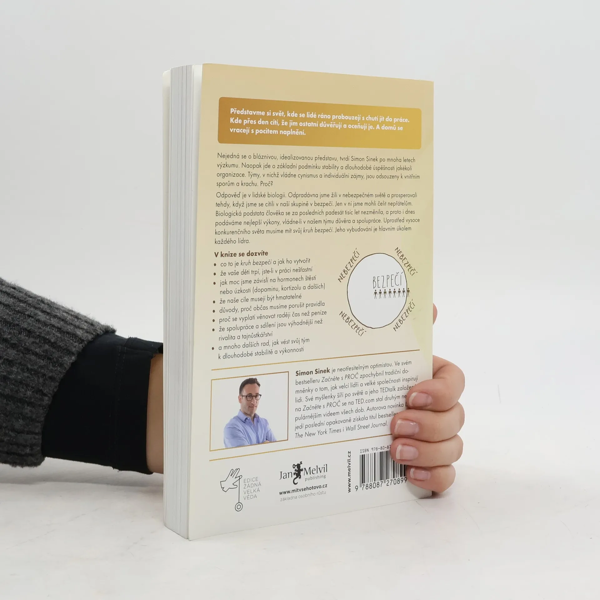 Silný titul pro každého, kdo chce úspěšně vést malý tým, firmu či velkou organizaci. Simon Sinek, antropolog, konzultant a autor bestselleru Začněte s proč ve své nové knize představuje principy moderního vůdcovství. Ukazuje, proč někteří lídři uspěli a jiní své podnikání potopili. Vůdcovství není o řízení — ale o schopnosti inspirovat a obětování se.