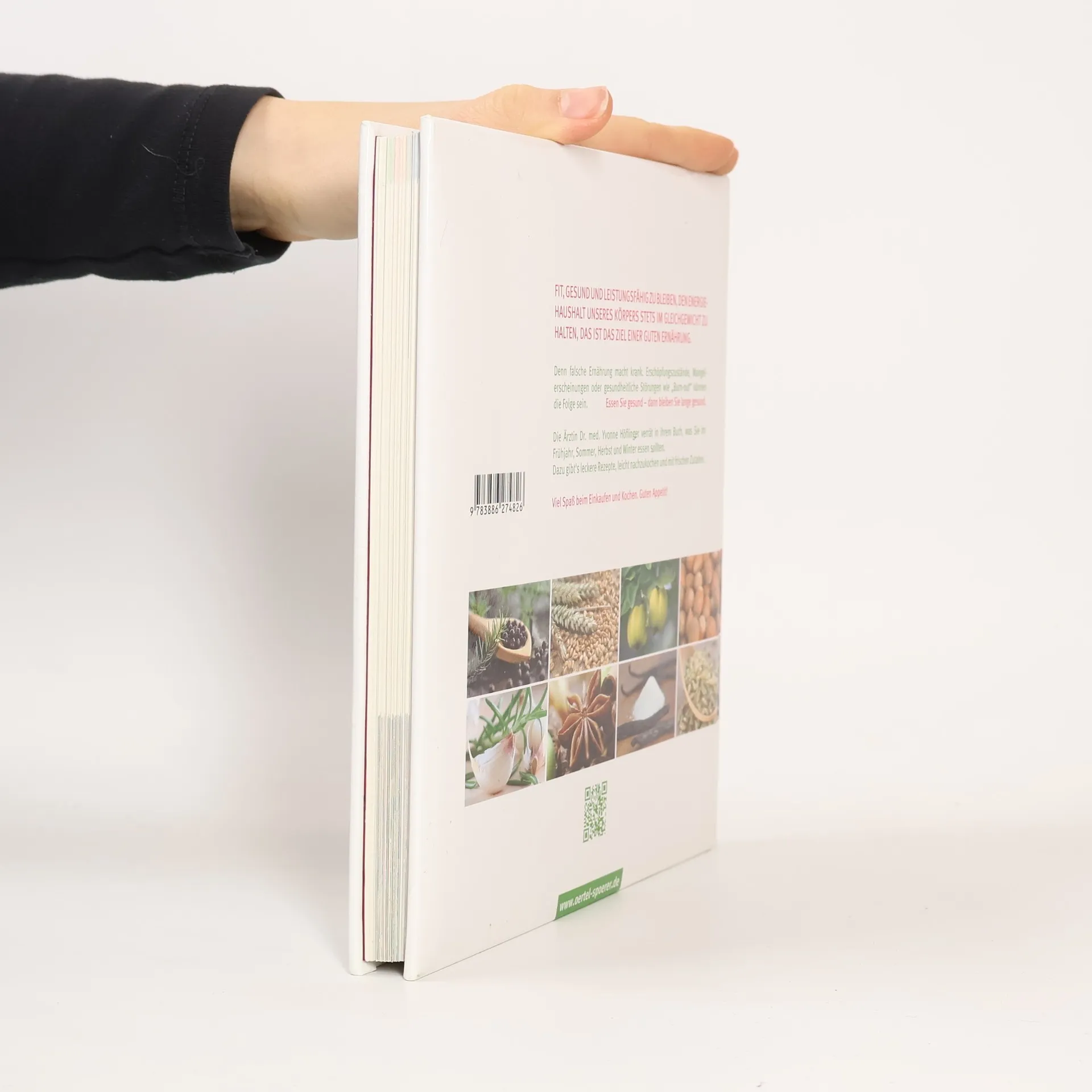 FIT, GESUND UND LEISTUNGSFÄHIG ZU BLEIBEN, DEN ENERGIEHAUSHALT UNSERES KÖRPERS STETS IM GLEICHGEWICHT ZU HALTEN, DAS IST DAS ZIEL EINER GUTEN ERNÄHRUNG. Denn falsche Ernährung macht krank. Erschöpfungszustände, Mangelerscheinungen oder gesundheitliche Störungen wie „Burn-out“ können die Folge sein. Essen Sie gesund - dann bleiben Sie lange gesund. Die Ärztin Dr. med. Yvonne Höflinger verrät in ihrem Buch, was Sie im Frühjahr, Sommer, Herbst und Winter essen sollten. Dazu gibt´s leckere Rezepte, leicht nachzukochen und mit frischen Zutaten.