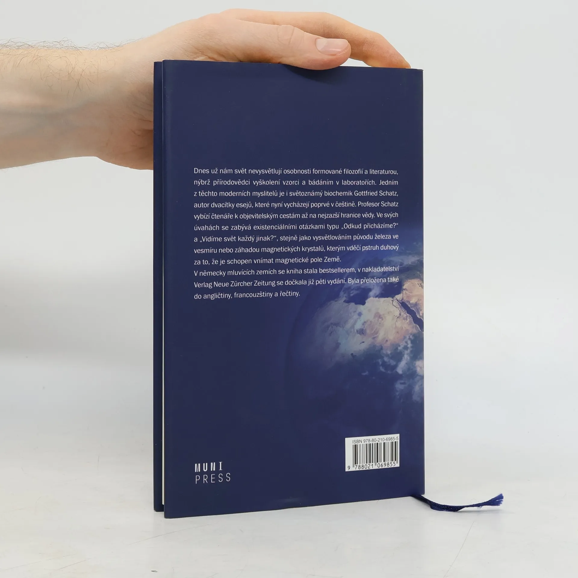 Dnes už nám svět nevysvětlují osobnosti formované filozofií a literaturou, nýbrž přírodovědci vyškolení vzorci a bádáním v laboratořích. Jedním z těchto moderních myslitelů je i světoznámý chemik a biolog Gottfried Schatz, autor dvacítky esejů, které nyní vycházejí poprvé v češtině. Profesor Schatz vybízí čtenáře k objevitelským cestám až na nejzazší hranice vědy. Ve svých úvahách se zabývá existenciálními otázkami typu „Odkud přicházíme?“ a „Vidíme svět každý jinak?“, stejně jako vysvětlováním původu železa ve vesmíru nebo záhadou magnetických krystalů, kterým vděčí pstruh duhový za to, že je schopen vnímat magnetické pole Země. V německy mluvících zemích se kniha stala bestsellerem, v nakladatelství Neue Zürcher Zeitung se dočkala již pěti vydání. Byla přeložena také do angličtiny, francouzštiny a řečtiny.