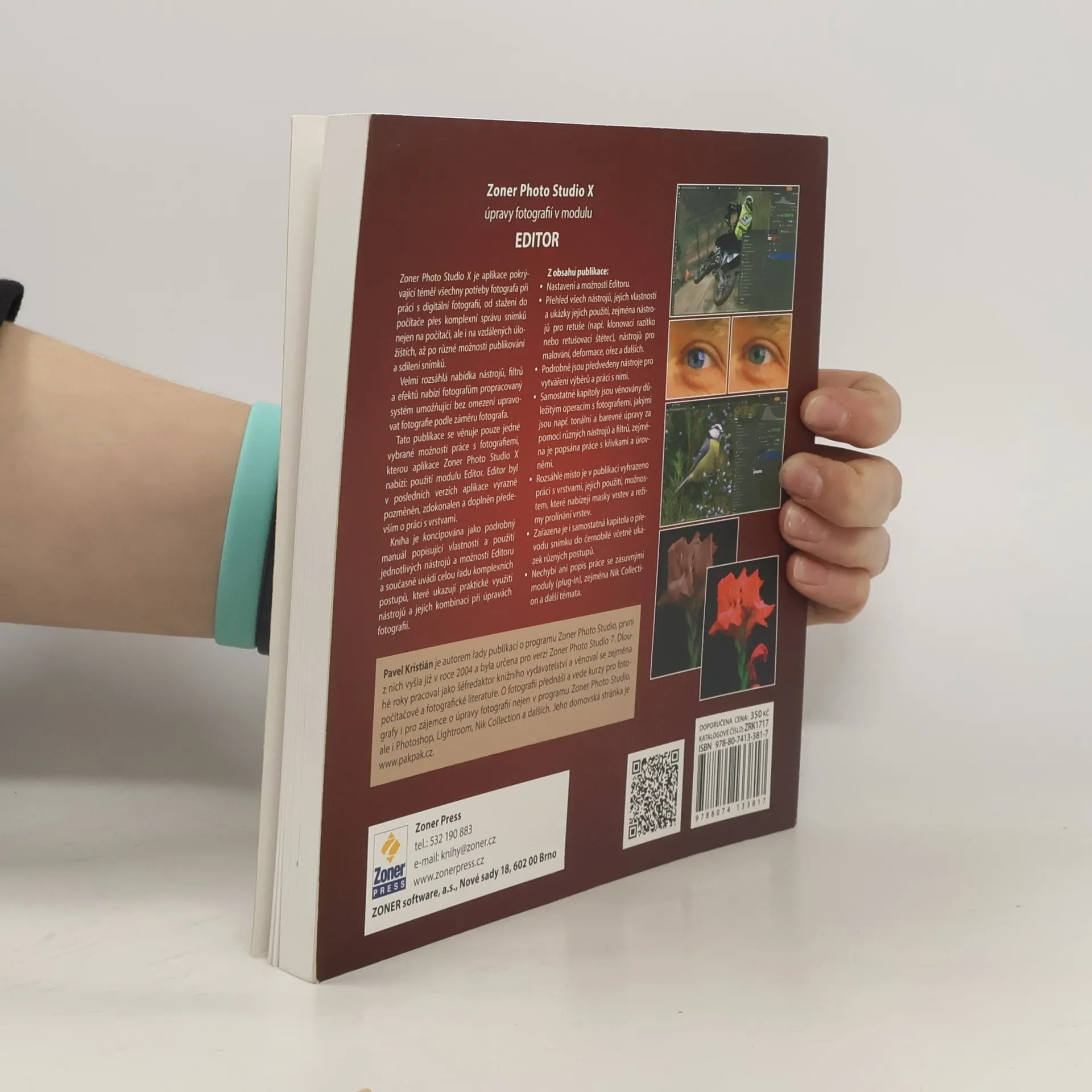 Jediná publikace na našem knižním trhu, která se podrobně věnuje práci v modulu EDITOR ve velmi rozšířeném software na úpravy fotografií - Zoner Photo Studio X. Kniha je koncipována jako podrobný manuál popisující vlastnosti a použití jednotlivých nástrojů a možnosti Editoru a současně uvádí celou řadu komplexních postupů, které ukazují praktické využití nástrojů a jejich kombinací při úpravách fotografií.