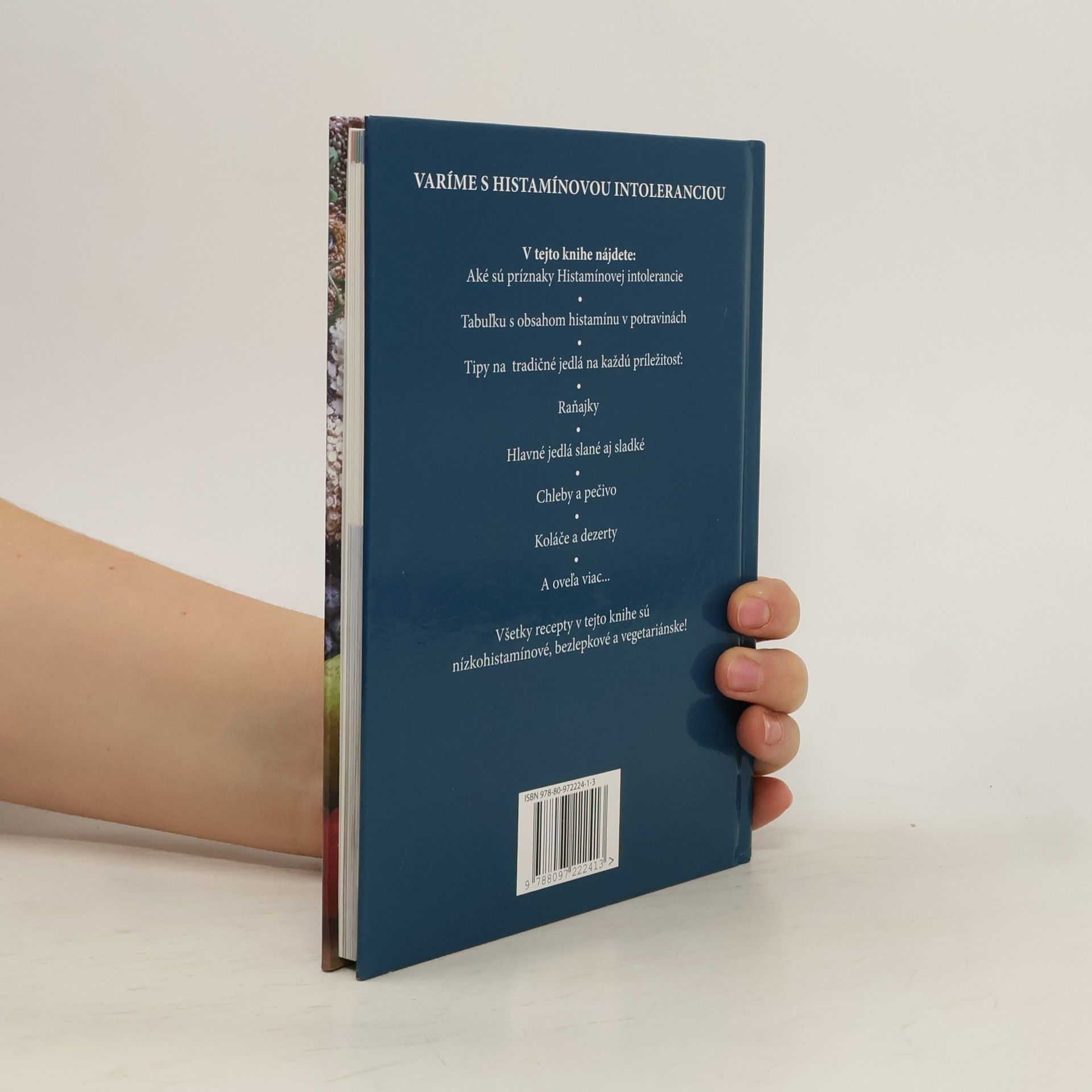 V tejto knihe nájdete: Aké sú príznaky histamínovej intolerancie Tabuľku s obsahom histamínu v potravinách Tipy na tradičné jedlá na každú príležitosť Raňajky Hlavné jedlá slané aj sladké Chleby a pečivo Koláče a dezerty a ešte oveľa viac... Všetky recepty v tejto knihe sú nízkohistamínové, bezlepkové a vegetariánske.