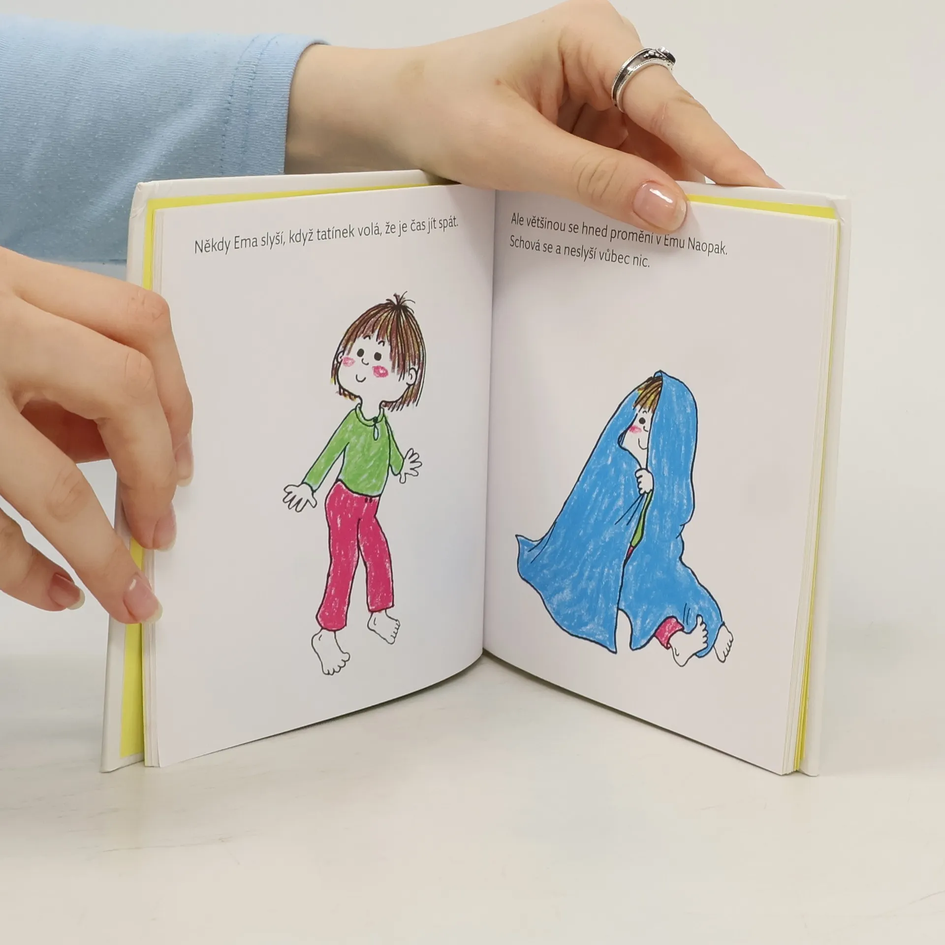 Dvě povídky o malé Emě (Ema Naopak, Ema spravuje hračky), v nichž švédská autorka a zároveň ilustrátorka vede děti k pořádkumilovnosti, ovládání svéhlavých nálad a k poznání, co je správné a co ne. Dotisk vydání v roce 2018.