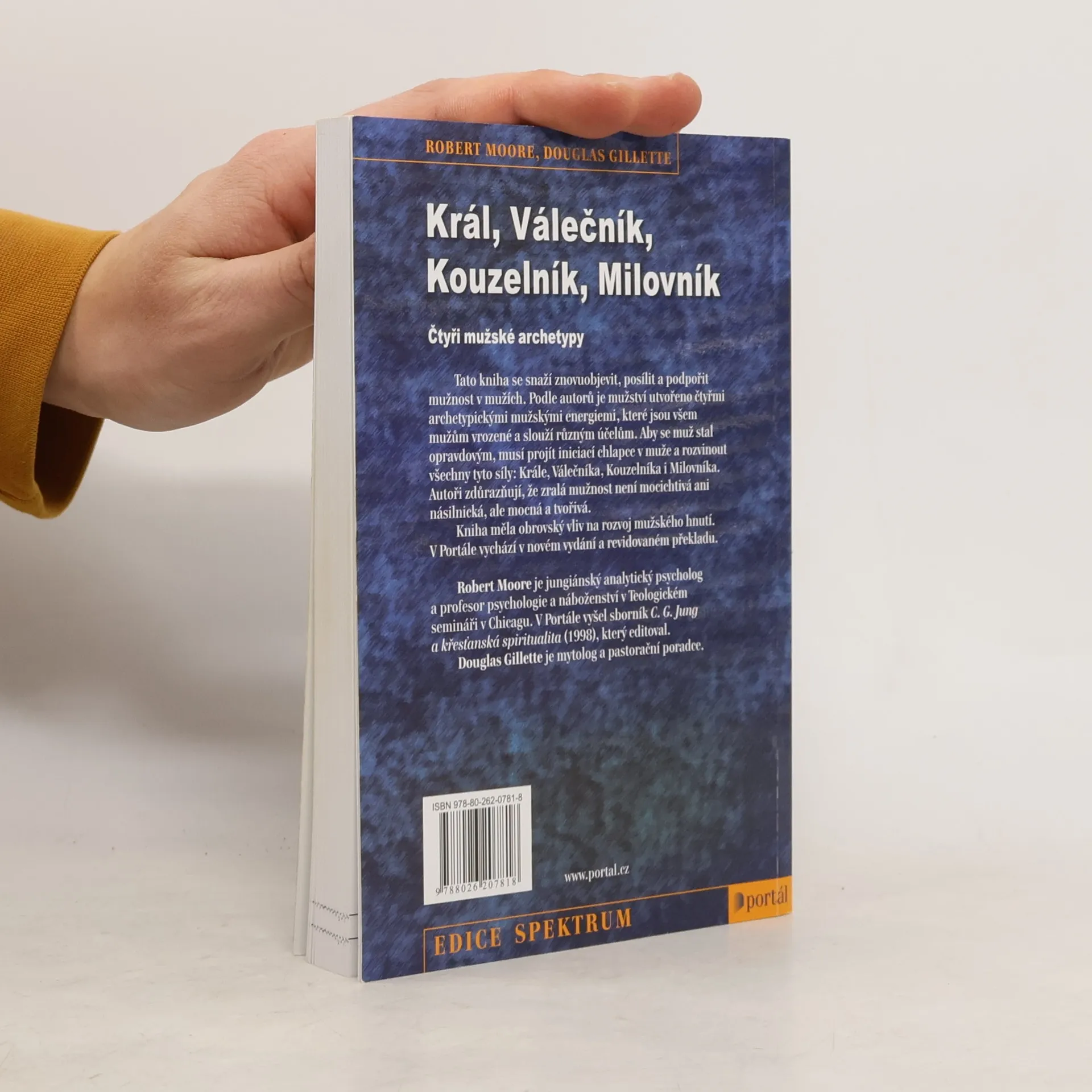 Podtitul: Čtyři mužské archetypy. Tato kniha se snaží znovuobjevit, posílit a podpořit mužnost v mužích. Podle autorů je mužství utvořeno čtyřmi archetypickými mužskými energiemi, které jsou všem mužům vrozené a slouží různým účelům. Aby se muž stal opravdovým, musí projít iniciací chlapce v muže a rozvinout všechny tyto síly: krále, válečníka, kouzelníka i milovníka. Zralá mužnost není mocichtivá ani násilnická, ale mocná a tvořivá. Společně s Blyovým Železným Janem měla kniha obrovský vliv na rozvoj mužského hnutí. Robert Moore je jungiánský analytický psycholog a profesor psychologie a náboženství v Teologickém semináři v Chicagu. V Portálu vyšel sborník C. G. Jung a křesťanská spiritualita (1998), který editoval. Douglas Gillette je mytolog a pastorační poradce.