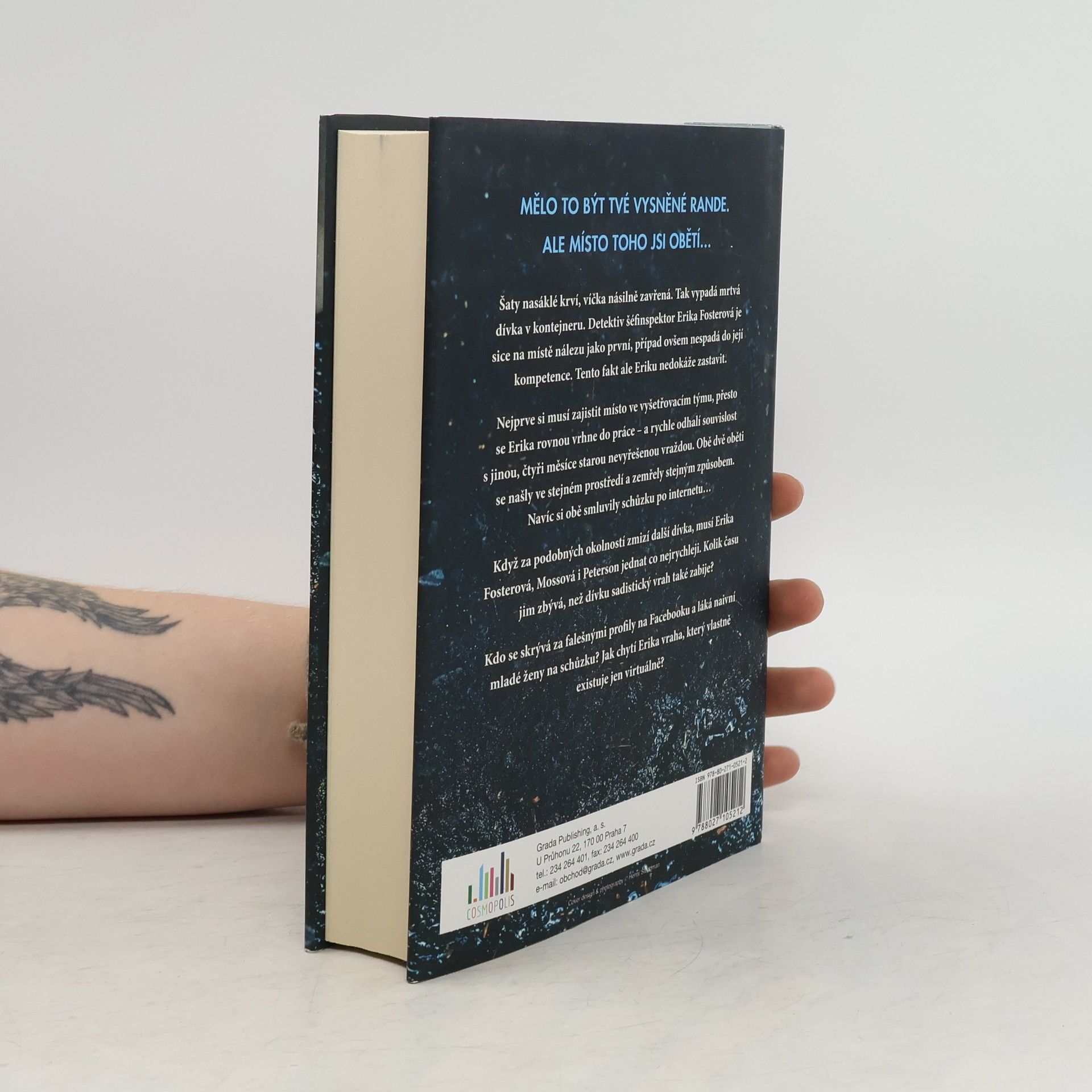 Mělo to být vysněné rande… Šaty nasáklé krví, víčka násilně zavřená. Tak vypadá mrtvá dívka v kontejneru. Detektiv šéfinspektor Erika Fosterová je na místě nálezu jako první. Problém ovšem je, že to není její případ. Nejprve si musí zajistit místo ve vyšetřovacím týmu, přesto se Erika rovnou vrhne do práce – a odhalí souvislost s jinou nevyřešenou vraždou. Obě oběti se našly ve stejném prostředí a zemřely stejným způsobem. Navíc si obě smluvily schůzku po internetu… Kdo se skrývá za falešnými profily na Facebooku a láká naivní mladé ženy na schůzku? Jak chytí Erika vraha, který vlastně existuje jen virtuálně?