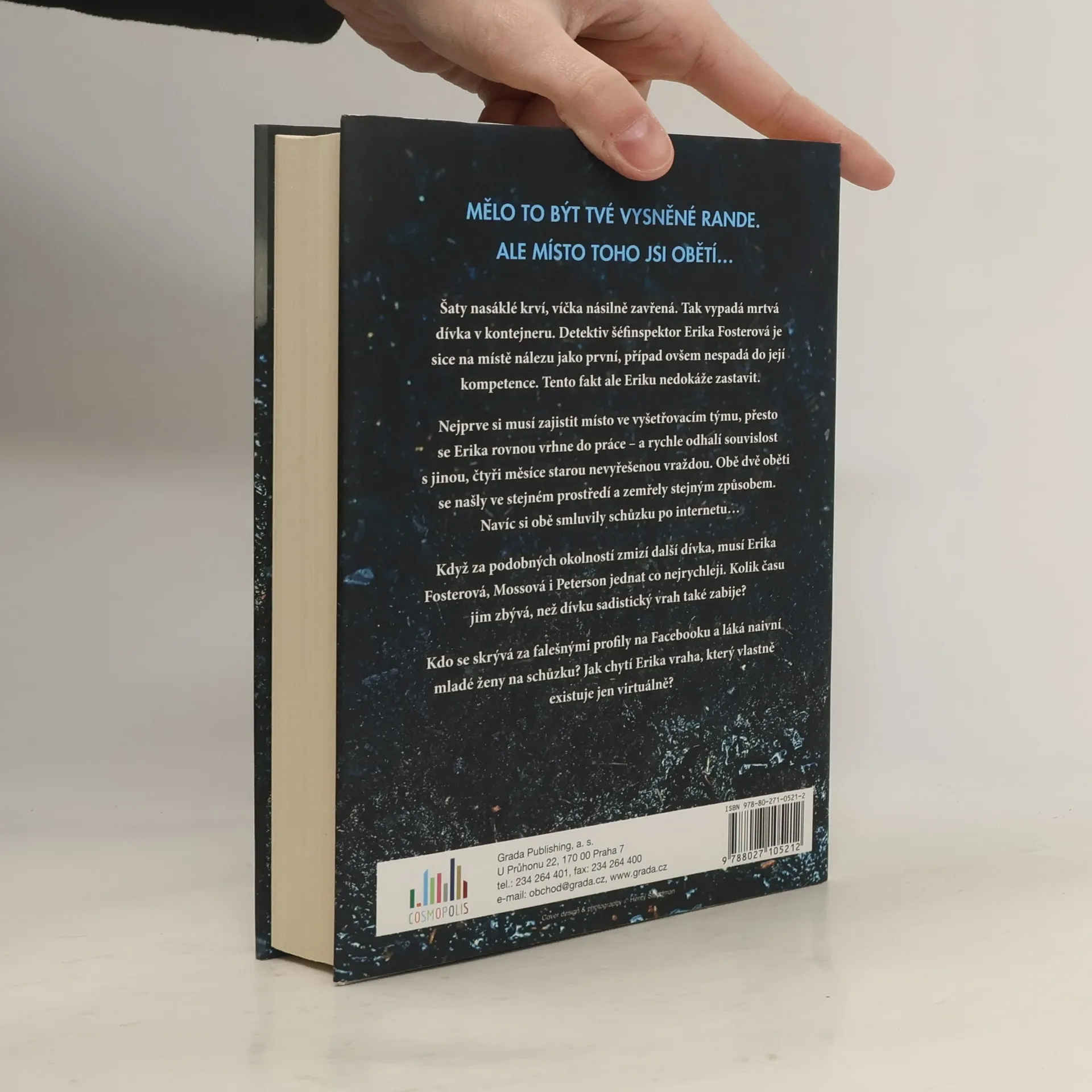 Mělo to být vysněné rande… Šaty nasáklé krví, víčka násilně zavřená. Tak vypadá mrtvá dívka v kontejneru. Detektiv šéfinspektor Erika Fosterová je na místě nálezu jako první. Problém ovšem je, že to není její případ. Nejprve si musí zajistit místo ve vyšetřovacím týmu, přesto se Erika rovnou vrhne do práce – a odhalí souvislost s jinou nevyřešenou vraždou. Obě oběti se našly ve stejném prostředí a zemřely stejným způsobem. Navíc si obě smluvily schůzku po internetu… Kdo se skrývá za falešnými profily na Facebooku a láká naivní mladé ženy na schůzku? Jak chytí Erika vraha, který vlastně existuje jen virtuálně?