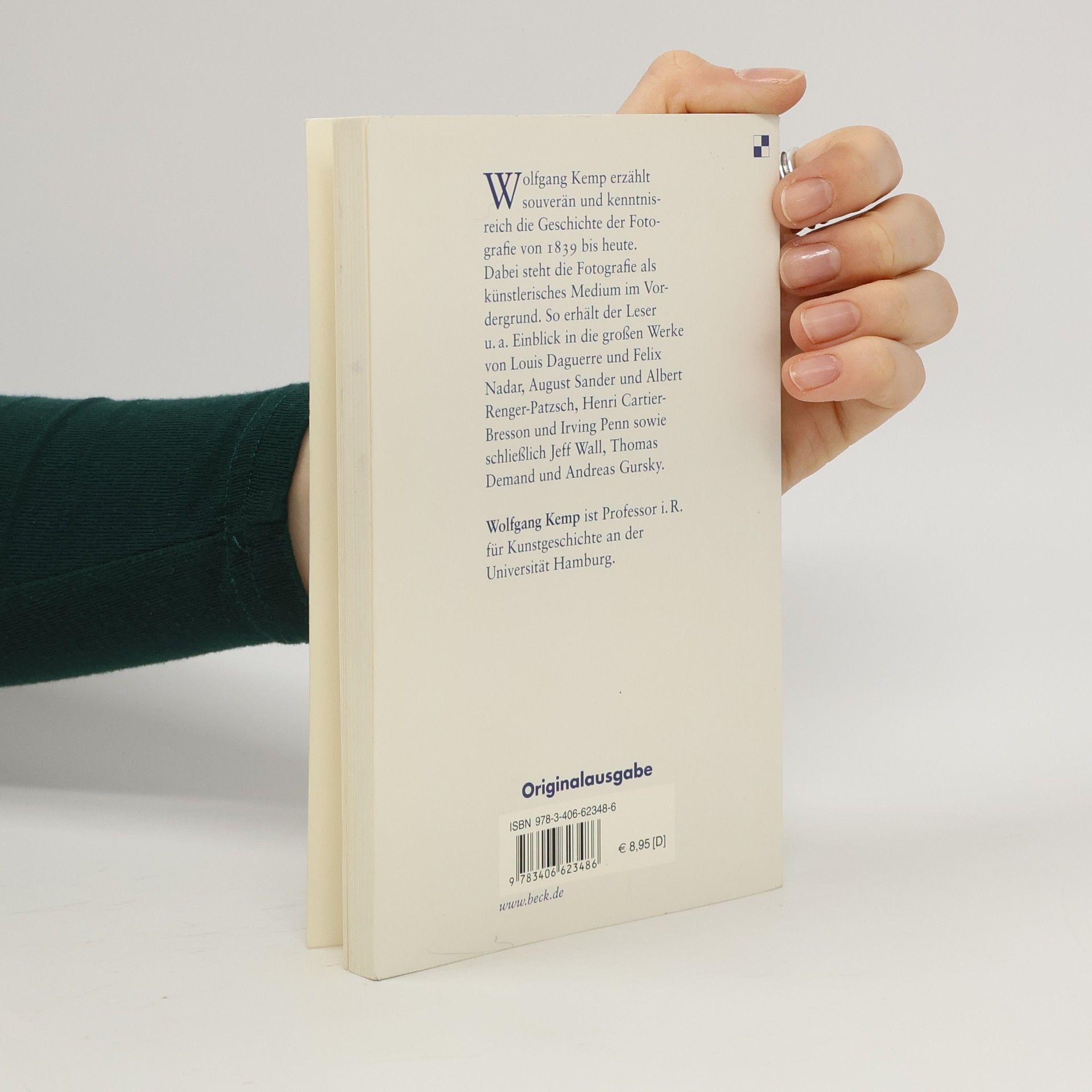 Wolfgang Kemp erzählt souverän und kenntnisreich die Geschichte der Fotografie von 1839 bis heute. Dabei steht die Fotografie als künstlerisches Medium im Vordergrund. So erhält der Leser u.a Einblick in die großen Werke von Louis Daguerre und Felix Nadar, August Sander und Albert Renger-Patzsch, Henri Cartier-Bresson, Irving Penn und Richard Avedon sowie schließlich Jeff Wall, Thomas Demand und Andreas Gursky. Das Buch endet mit dem Triumph der Fotografie: nicht nur ist sie inzwischen als künstlerisches Medium vollständig anerkannt, sondern hat sich sogar zu einem Leitmedium zeitgenössischer Kunstproduktion entwickelt.