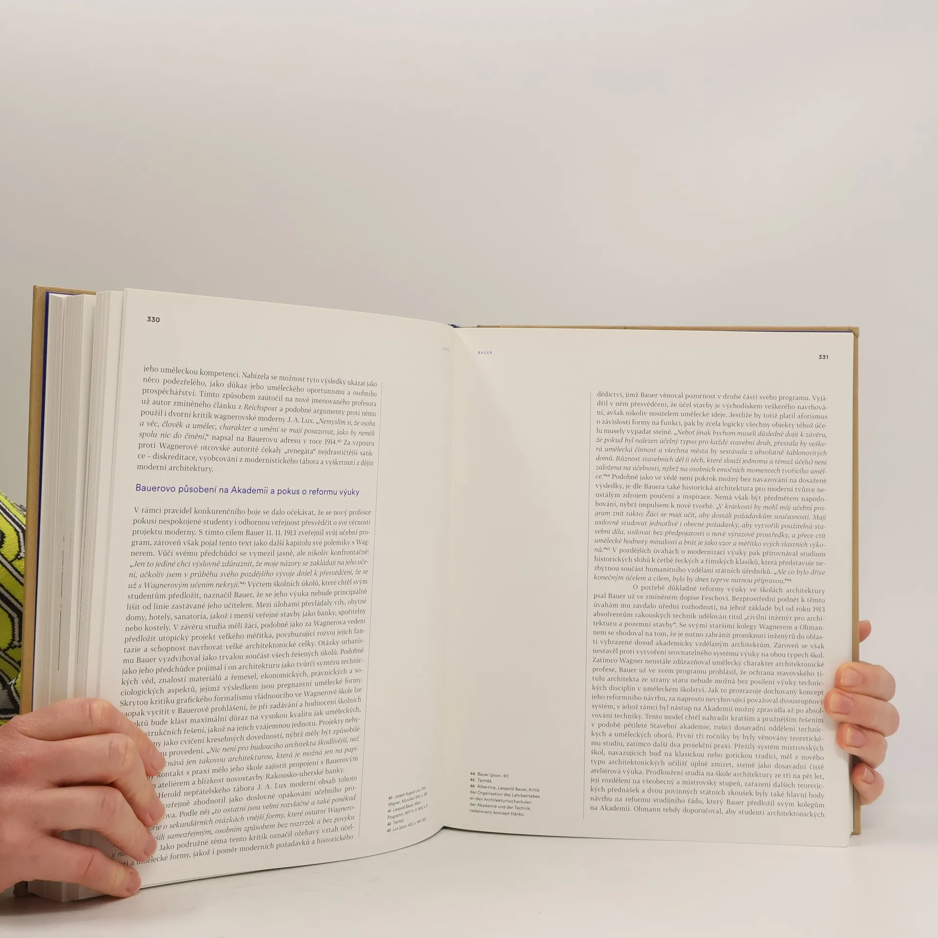 Leopold Bauer (1872–1938) patřil kolem roku 1900 k předním představitelům moderní architektury ve střední Evropě. Byl označován za tvůrce prvního moderního domu v habsburské monarchii a za autora první filozoficko-teoretické reflexe moderní architektury v tomto regionu. Později však popřel svá východiska a přešel na pozice nového historismu. Monografické zpracování jeho architektonického a designérského díla je založeno na studiu Bauerovy obsáhlé písemné pozůstalosti ve vídeňské Albertině a na systematickém terénním výzkumu architektových realizací.