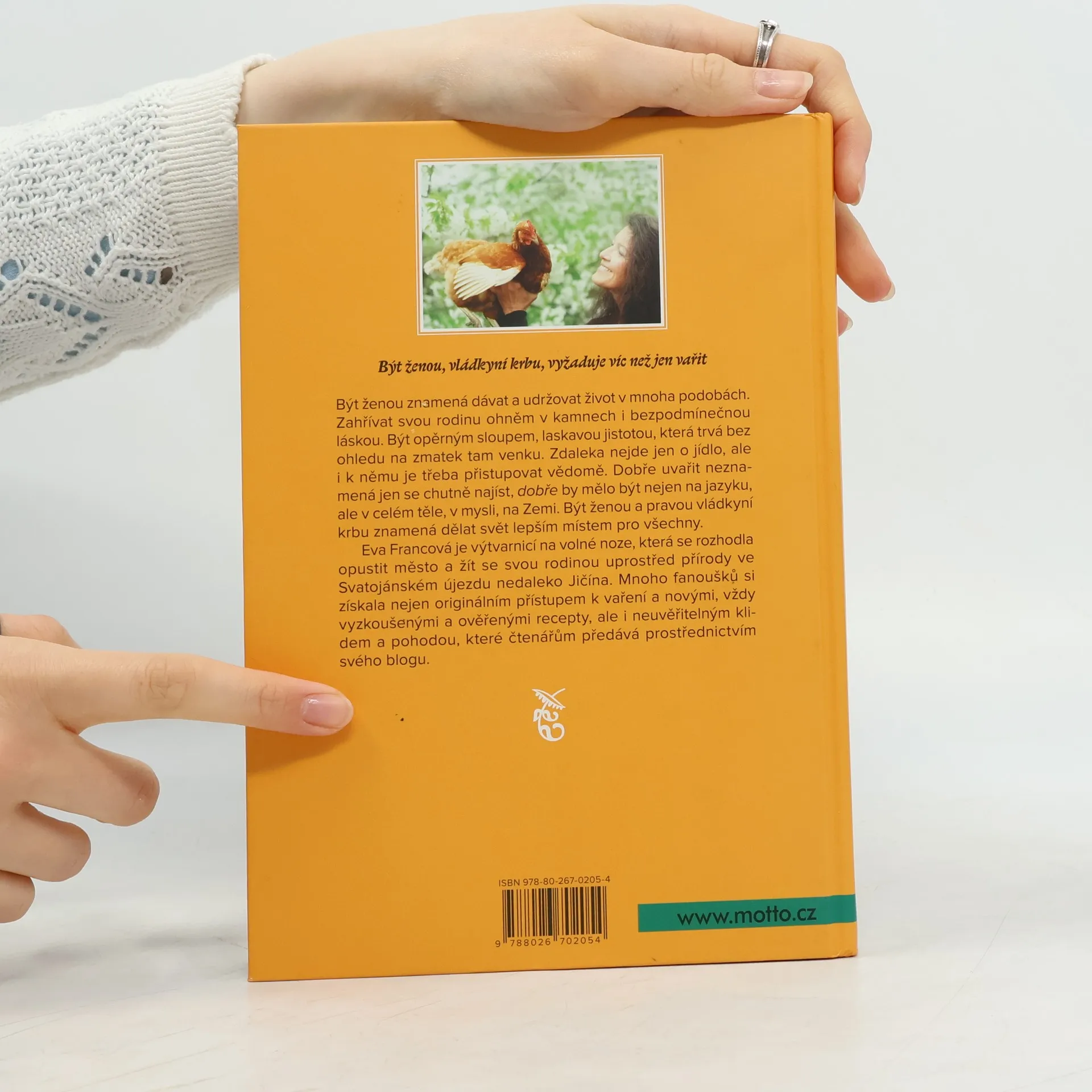 Být ženou, vládkyní krbu, vyžaduje víc než jen vařit. Být ženou znamená dávat a udržovat život v mnoha podobách. Zahřívat svou rodinu ohněm v kamnech i bezpodmínečnou láskou. Být opěrným sloupem, laskavou jistotou, která trvá bez ohledu na zmatek tam venku. Zdaleka nejde jen o jídlo, ale i k němu je třeba přistupovat vědomě. Dobře uvařit neznamená jen se chutně najíst, „dobře“ by mělo být nejen na jazyku, ale v celém těle, v mysli, na Zemi. Být ženou a pravou vládkyní krbu znamená dělat svět lepším místem pro všechny. Eva Francová je výtvarnicí na volné noze, která se rozhodla opustit město a žít se svou rodinou uprostřed přírody ve Svatojánském újezdu nedaleko Jičína. Mnoho fanoušků si získala nejen originálním přístupem k vaření a novými, vždy vyzkoušenými a ověřenými recepty, ale i neuvěřitelným klidem a pohodou, které čtenářům předává prostřednictvím svého blogu.