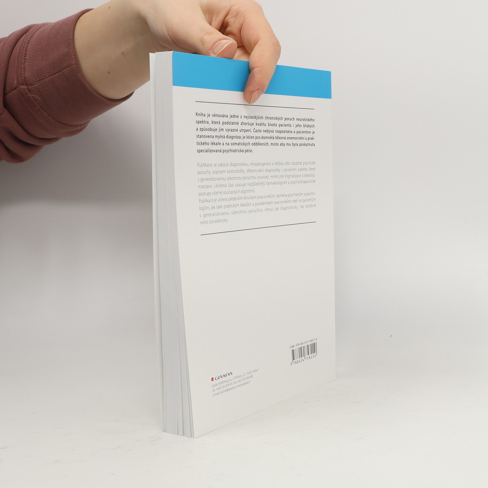 Kniha je věnována jedné z nejčastějších chronických poruch neurotického spektra, která podstatně zhoršuje kvalitu života pacienta i jeho blízkých a způsobuje jim výrazné utrpení. Často nebývá rozpoznána a pacientovi je stanovena mylná diagnóza; je léčen pro domnělá tělesná onemocnění u praktického lékaře a na somatických odděleních, místo aby mu byla poskytnuta specializovaná psychiatrická péče. Monografie se zabývá diagnostikou, etiopatogenezí a léčbou této závažné psychické poruchy, popisem komorbidity, diferenciální diagnostiky i sociálními aspekty, které s generalizovanou úzkostnou poruchou souvisejí, mimo jiné stigmatizace a sebestigmatizace. Léčebná část ukazuje nejdůležitější farmakologické a psychoterapeutické postupy včetně současných algoritmů. Publikace je určena především klinickým pracovníkům, zejména psychiatrům a psychologům, ale také praktickým lékařům a poradenským pracovníkům, kteří se pacientům s generalizovanou úzkostnou poruchou věnují jak diagnosticky, tak léčebně nebo poradensky.