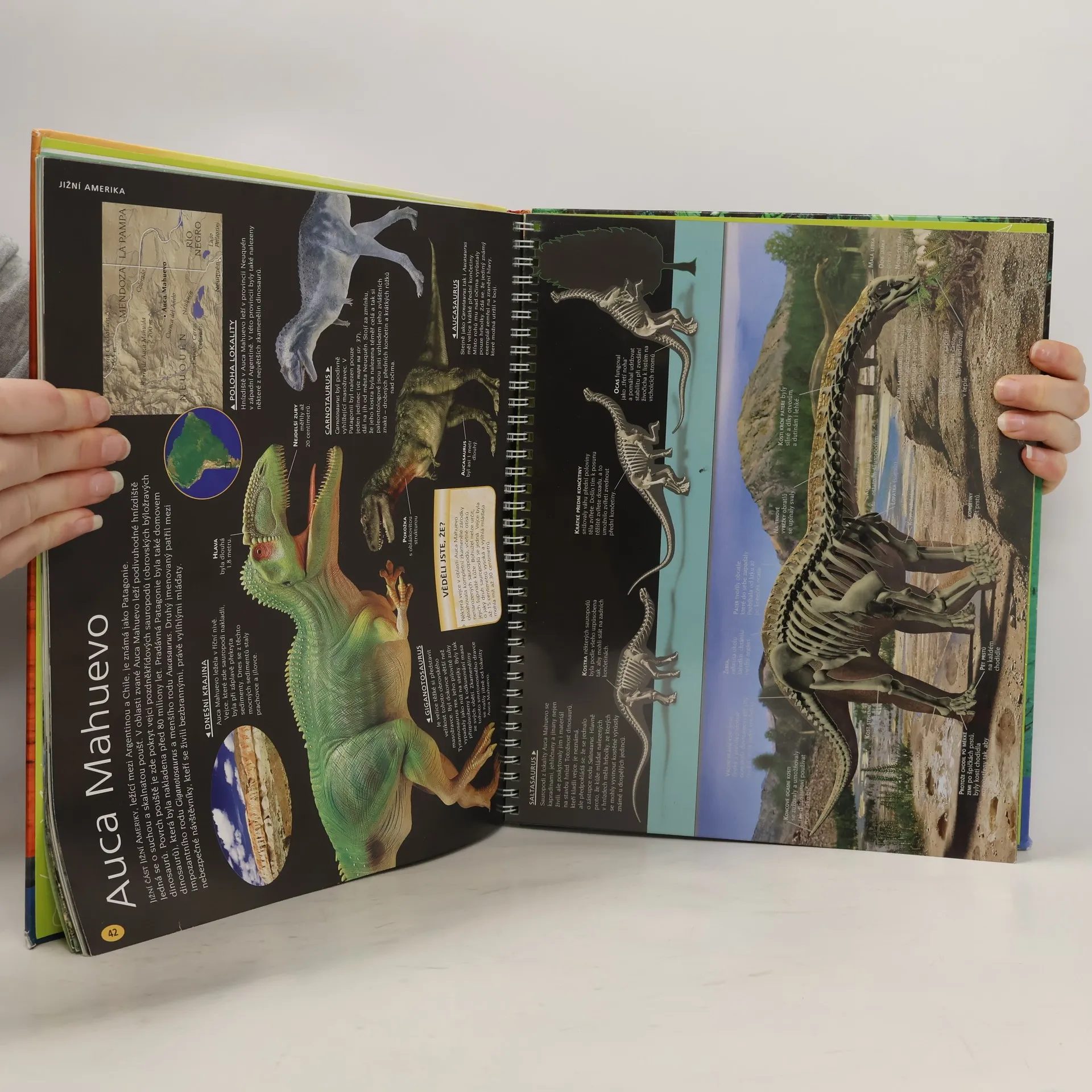 Obrazový atlas dinosarů pro děti představuje významná prehistorická naleziště a na nich nalezené pravěké ještěry.