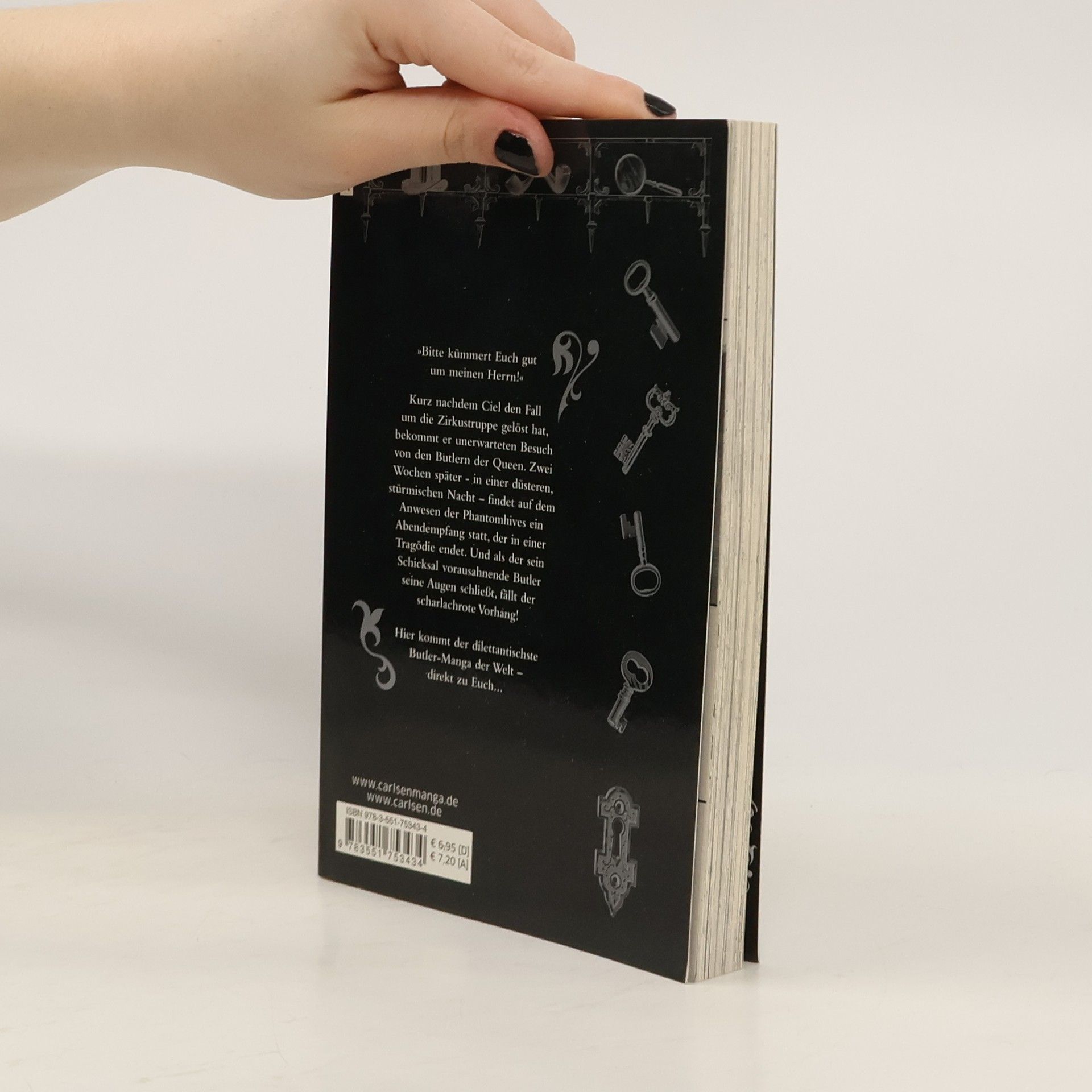 BLACK BUTLER verspricht atemberaubende Spannung im London des 19. Jahrhunderts. Eine neue Serie mysteriöser Überfälle erschüttert London und zwingt den jungen Herrn Ciel und seinen Butler Sebastian, den gemütlichen Landsitz der Phantomhives zu verlassen. Bei ihren Ermittlungen treffen sie auf einen jungen indischen Prinzen und dessen Diener. Angesichts dieses tadellosen indischen Butlers beginnen Sebastians makellos weißen Handschuhe zu wirbeln. Und wie sie wirbeln! Einzigartiger Mix aus Krimi, Action und Mystery, bei dem der Afternoon Tea nicht fehlen darf. Weitere Informationen: - empfohlen ab 14 Jahren - Artbook und Character Guide zum Manga - Anime auf Netflix - Anime-DVD/Blu-ray von KAZÉ Anime - Kinofilm - Live-Action-Film- Die Serie gilt als noch nicht abgeschlossen.