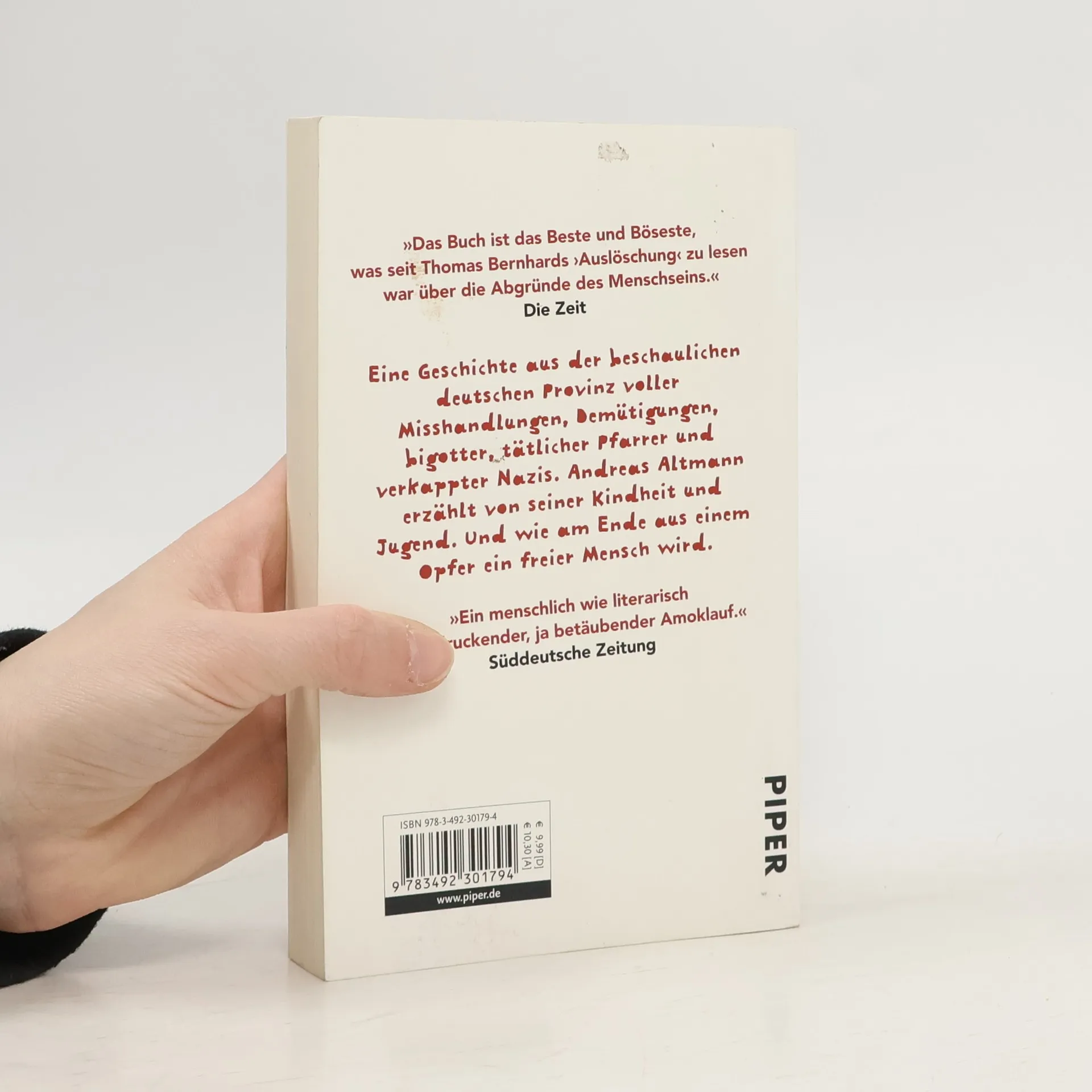 Eine Geschichte aus der beschaulichen deutschen Provinz voller Misshandlungen, Demütigungen, bigotter, tätlicher Pfarrer und verkappter Nazis. Andreas Altmann erzählt von seiner Kindheit und Jugend. Und wie am Ende aus einem Opfer ein freier Mensch wird.