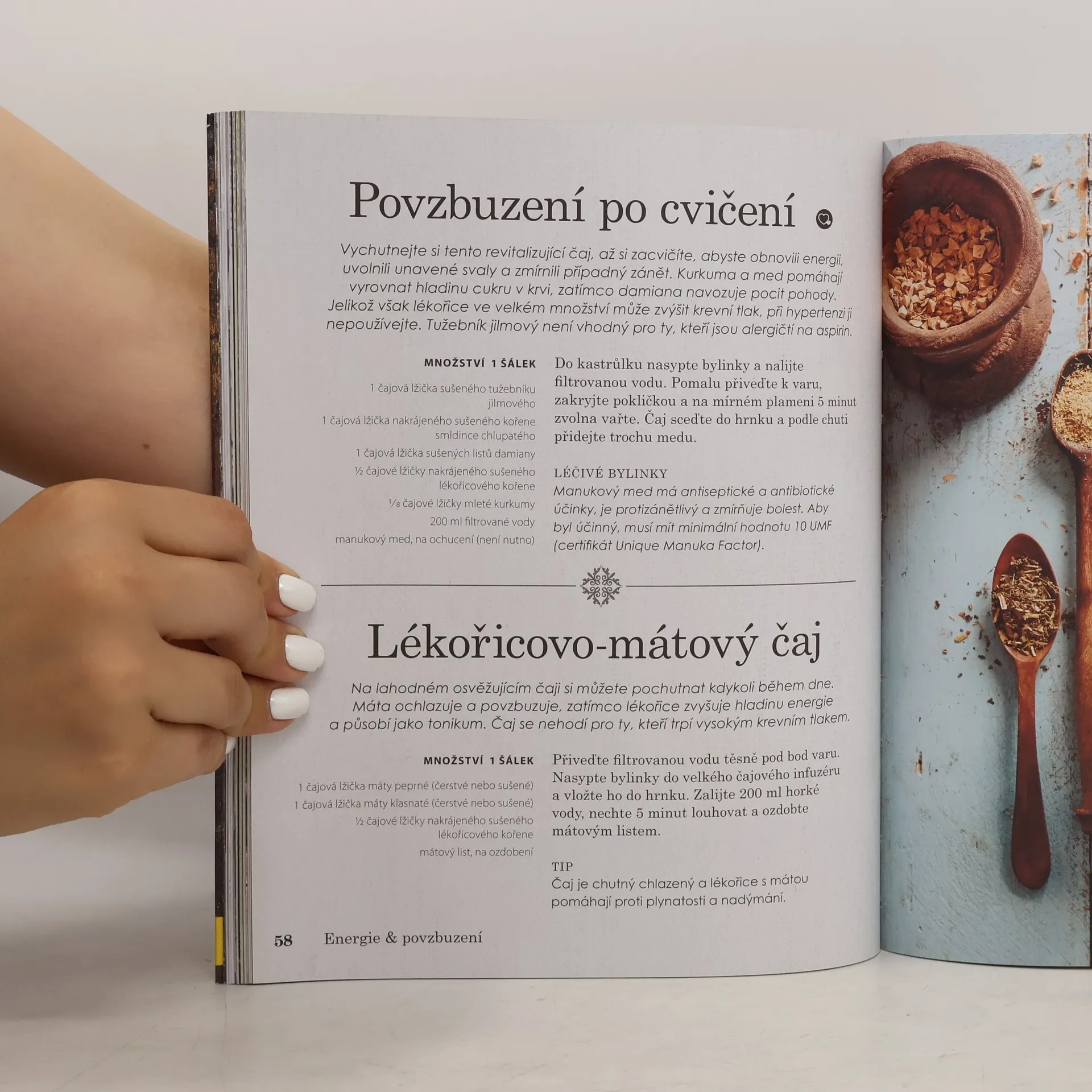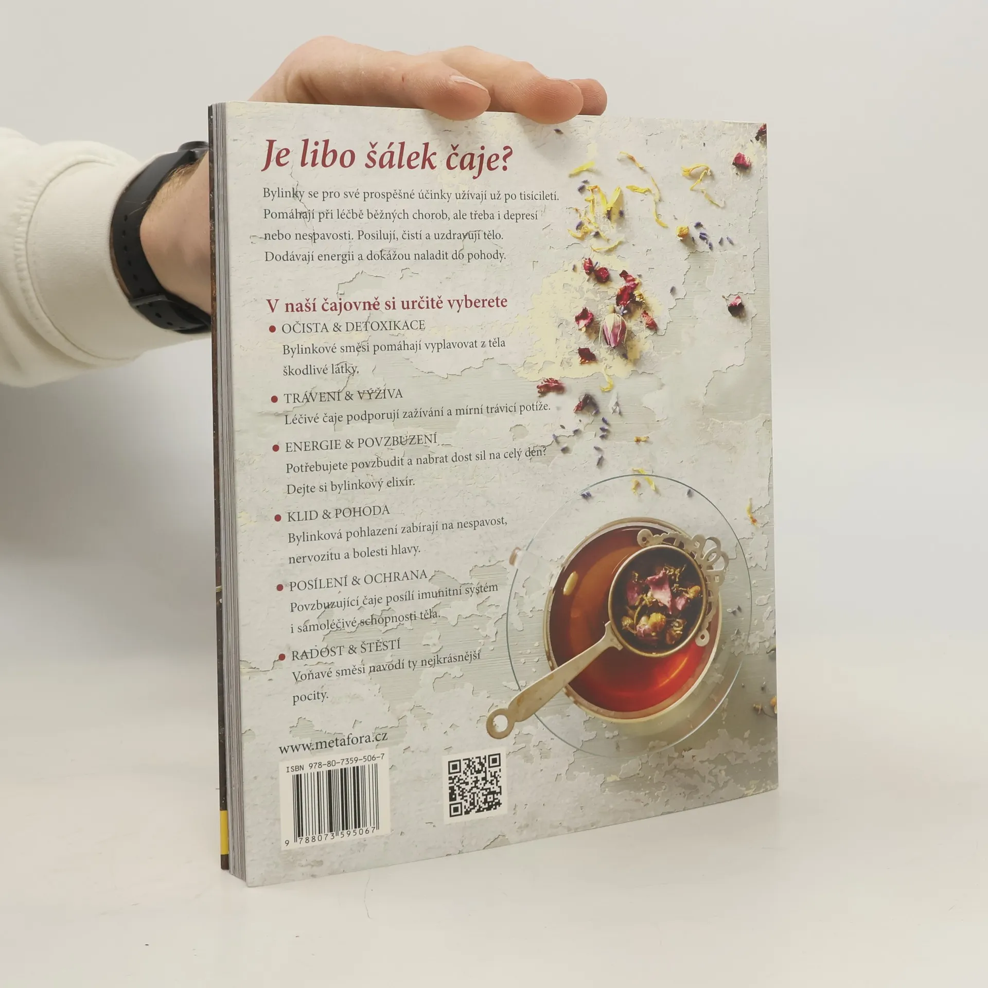 V téhle „čajové krabičce“, sbírce dokonale sestavených receptů najdete bylinkové čaje na všechny možné neduhy těla i ducha. Čekají vás tu čaje proti nachlazení, na dobré spaní a správné trávení, na zahřátí v zimě i ochlazení v létě, elixír pro odvahu či energii, stejně jako odvar pro uklidnění a relaxaci. A to samozřejmě zdaleka není všechno. Potřebujete posílit imunitu? Žádný problém. Máme pro vás čaj plný antioxidantů a dalších prospěšných látek, který pomůže zvýšit odolnost proti nemocem. A co takhle čaj pro štěstí? Taky máme. Posaďte se s voňavým šálkem do pohodlného křesla a uvidíte, jak vám vyloudí úsměv na tváři. Chcete ráno plni energie vyskočit z postele? Tak to si nalistujte a uvařte čaj na dobré ráno. Všechno vám půjde pěkně od ruky. Nakonec kniha nabídne ještě přehledný Herbář se všemi bylinkami, které jsou ve všech receptech použité. Dozvíte se o jejich vlastnostech a účincích, takže vždycky budete vědět, na jaké problémy se která hodí a naučíte se míchat své vlastní směsi přímo na míru.