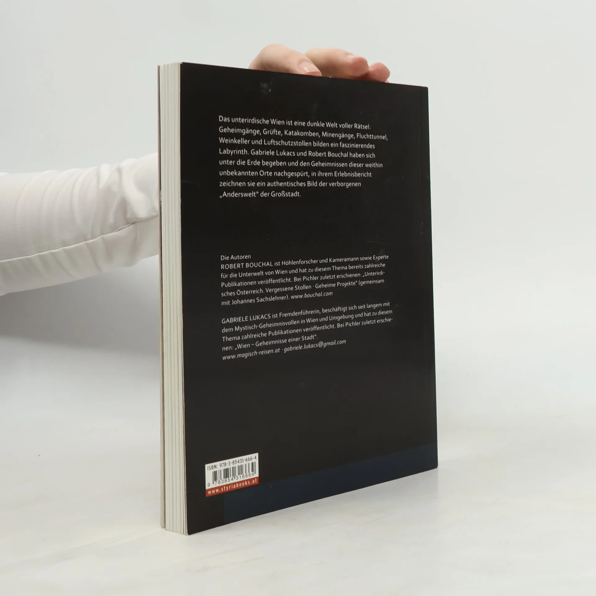 Eine Reise in den Wiener Unterbau … Die Fremdenführerin GabrieleLukacs und der Fotograf Robert Bouchal sind Experten für jenes Wien, das kaum jemand kennt. Sie begeistern sich nicht nur für architektonische oder historische Besonderheiten dieser Stadt, sondern vor allem auch für das Wien der unbekannten Keller, rätselhaften Gänge und verborgenen Tunnel. Das erfolgreiche Team hat sich auch diesmal wieder unter die Erde begeben, um den Geheimnissen einer Welt fernab des Sonnenlichts nachzuspüren, in die einzudringen bisher nur wenigen Eingeweihten vergönnt war. Es geriet dabei in ein faszinierendes Labyrinth von Geheimgängen, Grüften, Katakomben, Weinkellern und Bunkern, das noch an vielen Stellen erhalten ist.
