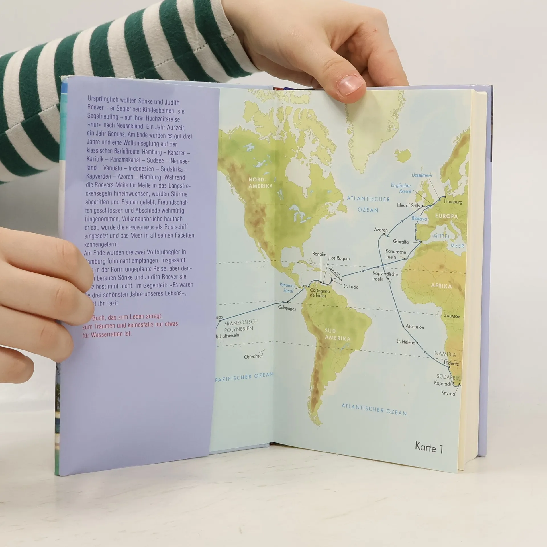 Ursprünglich wollten Sönke und Judith Roever – er Segler seit Kindesbeinen, sie Segelneuling – auf ihrer Hochzeitsreise „nur“ nach Neuseeland. Ein Jahr Auszeit, ein Jahr Genuss. Am Ende wurden es gut drei Jahre und eine Weltumseglung auf der klassischen Barfußroute: • Hamburg• Kanaren• Karibik• Panamakanal• Südsee• Neuseeland• Vanuatu• Indonesien• Südafrika• Kapverden• Azoren• HamburgWährend die Roevers Meile für Meile in das Langstreckensegeln hineinwuchsen, wurden Stürme abgeritten und Flauten gelebt, Freundschaften geschlossen und Abschiede wehmütig hingenommen, Vulkanausbrüche hautnah erlebt, wurde die Hippopotamus als Postschiff eingesetzt und das Meer in all seinen Facetten kennengelernt. Am Ende wurden die zwei Vollblutsegler in Hamburg Hamburg fulminant empfangen. Insgesamt eine in der Form ungeplante Reise, aber dennoch bereuen Sönke und Judith sie ganz bestimmt nicht. Im Gegenteil: “Es waren die schönsten drei Jahre unseres Lebens”, lautet ihr Fazit.