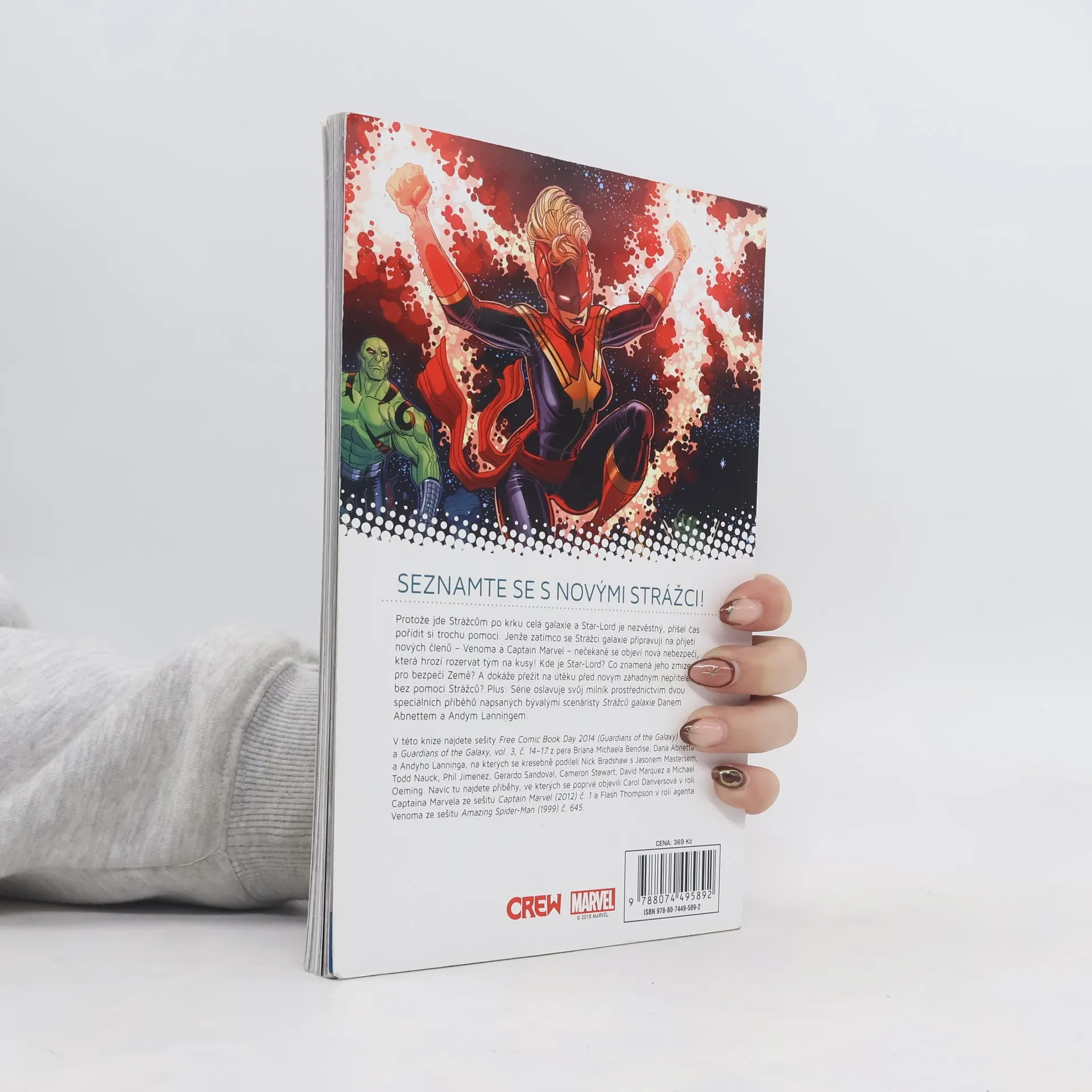 SEZNAMTE SE S NOVÝMI STRÁŽCI! Protože jde Strážcům po krku celá galaxie a Star-Lord je nezvěstný, přišel čas pořídit si trochu pomoci. Jenže zatímco se Strážci galaxie připravují na přijetí nových členů - Venoma a Captain Marvel - nečekaně se objeví nová nebezpečí, která hrozí rozervat tým na kusy! Kde je Star-Lord? Co znamená jeho zmizení pro bezpečí Země? A dokáže přežít na útěku před novým záhadným nepřítelem bez pomoci Strážců? Plus: Série oslavuje svůj milník prostřednictvím dvou speciálních příběhů napsaných bývalými scenáristy Strážců galaxie Danem Abnettem a Andym Lanningem.