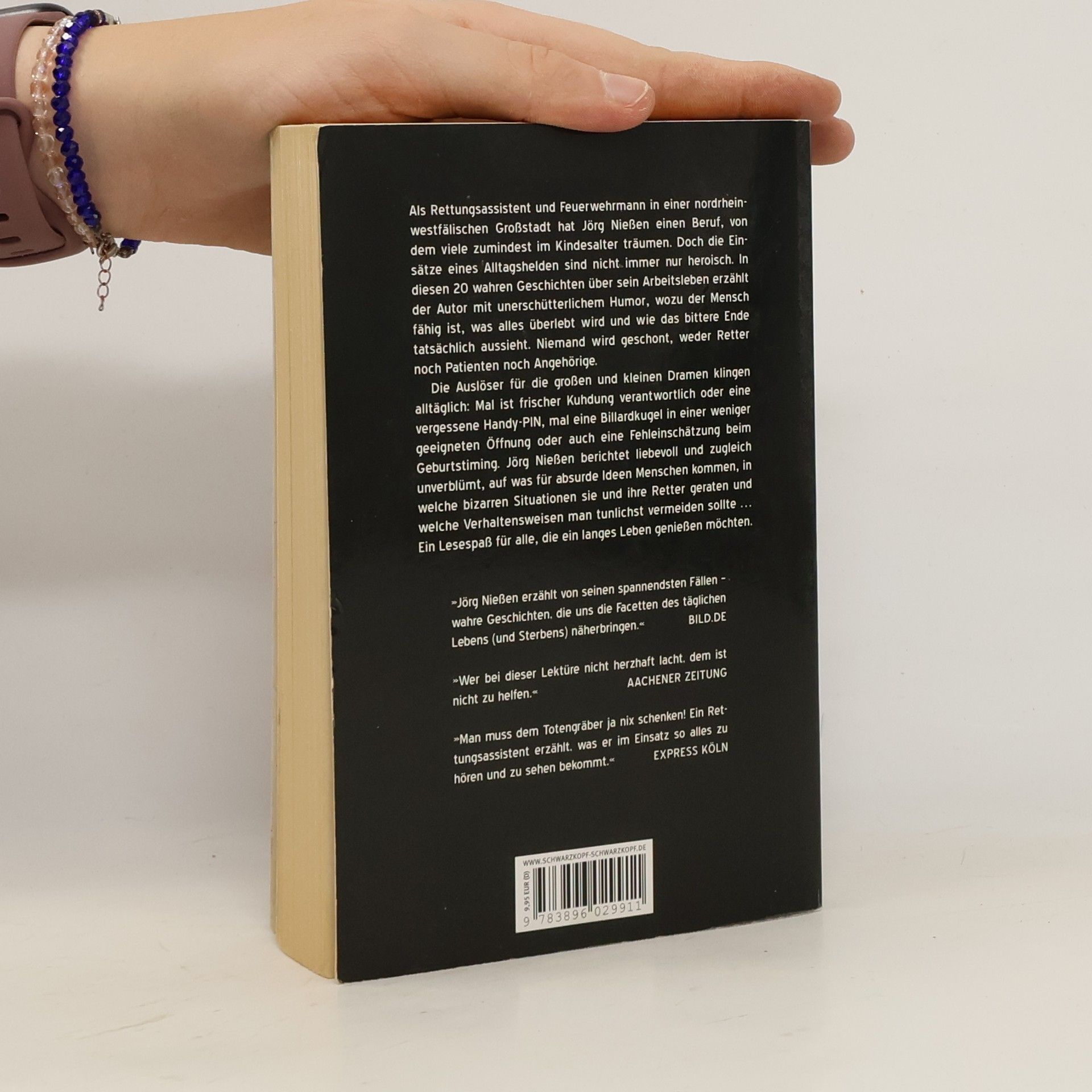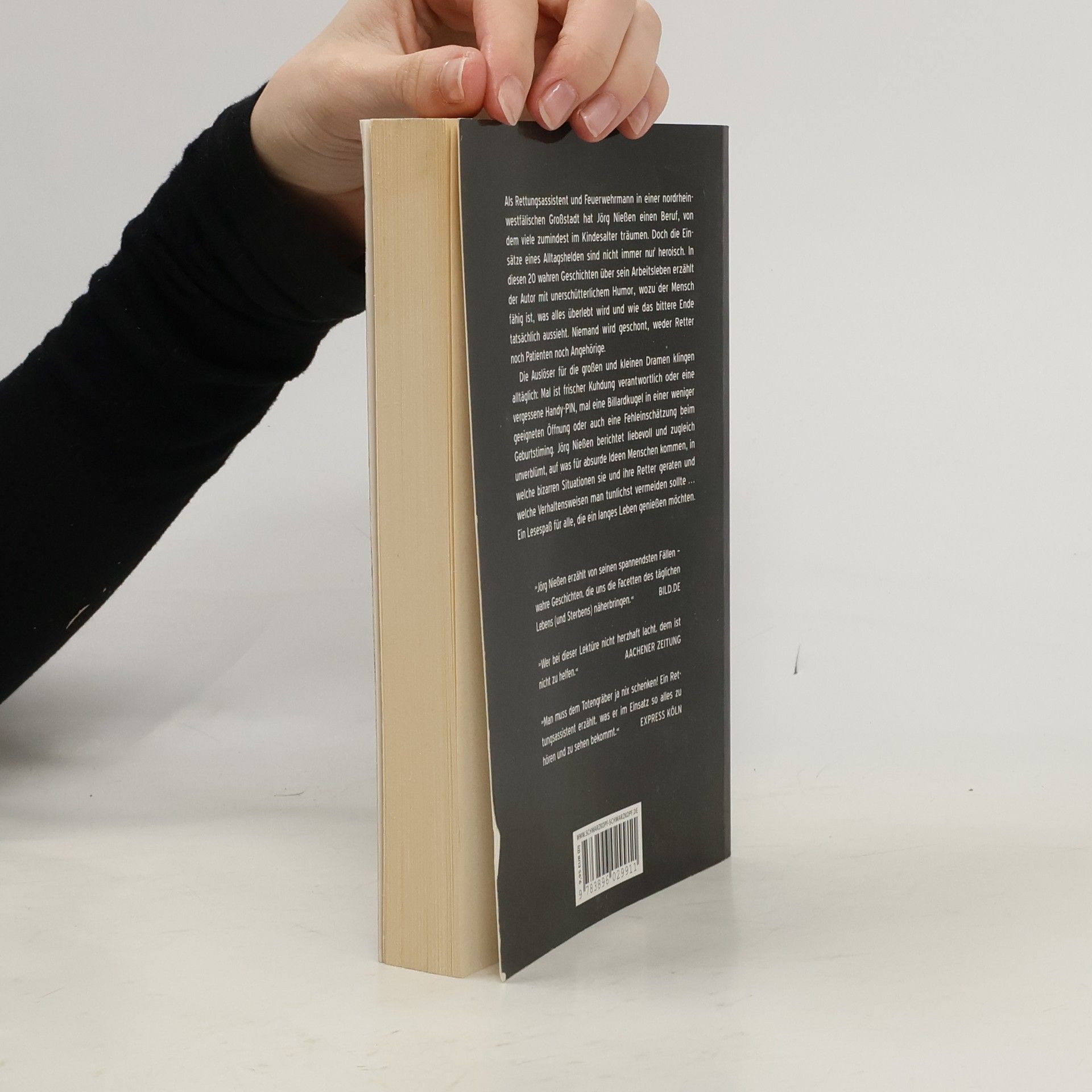 Zusammen mit seinen Kollegen erfährt der Autor in 20 wahren Geschichten am eigenen Leib, wozu der Mensch fähig ist, was alles überlebt, woran letztendlich gestorben wird und wie das bittere Ende tatsächlich ausschaut. Niemand wird geschont, weder Retter noch Patienten noch Angehörige. Jörg Nießen räumt auf mit wirklichkeitsverzerrenden TV-Serien à la Medicopter 117, die manch einen Mitmenschen dazu verleiten, schnell mal die Notrufnummer 112 zu wählen, wenn irgendwo der Schuh drückt. Im Alltag des Notfallretters konkurrieren bizarre Lappalien und haarsträubende Notfälle miteinander, weswegen der Retter sich vor allem die Fähigkeit bewahren muss, dem Schicksal auch mal ins Gesicht lachen zu können. Die Auslöser für die kleinen und großen Dramen klingen alltäglich: Mal ist frischer Kuhdung verantwortlich, mal eine PIN, Künstlerallüren oder auch Billardkugeln in mehr oder weniger geeigneten Körperöffnungen. Das Leben ist überraschend kreativ und schlägt uns immer wieder gern ein Schnippchen.