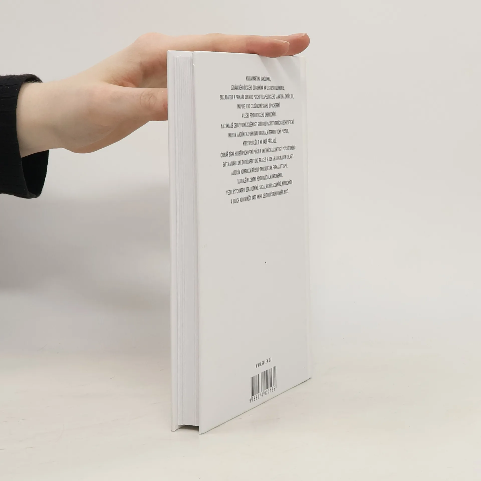 Kniha Martina Jarolímka, uznávaného českého odborníka na léčbu schizofrenie, zakladatele a primáře Denního psychoterapeutického sanatoria Ondřejov, mapuje jeho celoživotní snahu o pochopení a léčbu psychotického onemocnění. Na základě celoživotní zkušenosti s léčbou pacientů trpících schizofrenií Martin Jarolímek zformoval originální terapeutický přístup, který přibližuje na řadě příkladů. Čtenář získá hlubší pochopení příčin a vnitřních zákonitostí psychotického světa a nahlédne do terapeutické práce s bludy a halucinacemi (hlasy). Autorův komplexní přístup zahrnuje jak farmakoterapii, tak další nezbytné psychosociální intervence. Vedle psychiatrů, zdravotníků, sociálních pracovníků, nemocných a jejich rodin může tato odborně-populární kniha oslovit i širokou veřejnost.