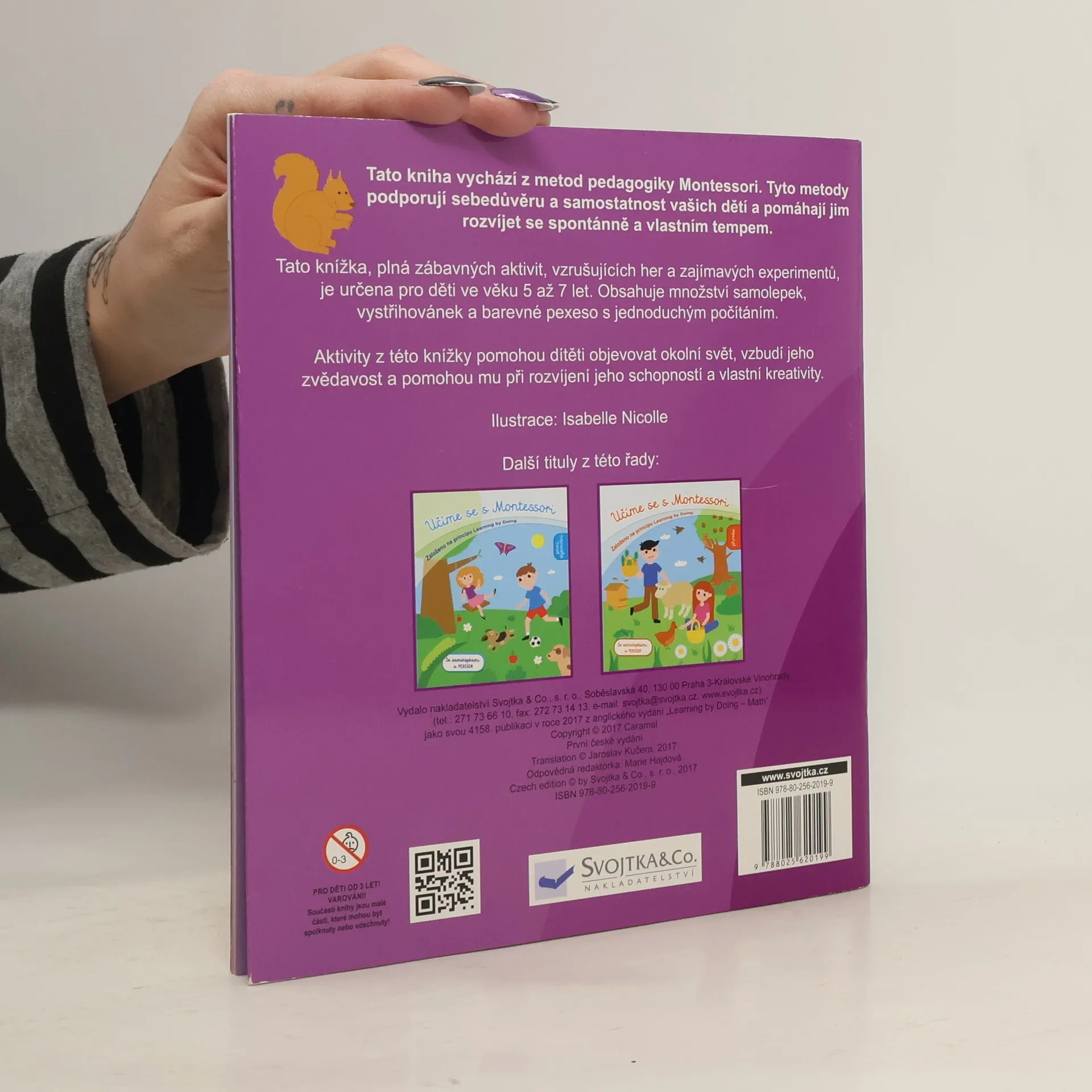 Tato knížka seznamuje děti s čísly, porovnáním, co je větší a co menší, prvním počítáním a vším, co souvisí s matematikou. Vychází z metod pedagogiky Montessori, která pomáhá dětem rozvíjet se vlastním tempem, podporuje jejich sebedůvěru a samostatnost. Knížka je plná aktivit, vzrušujících her a určitě děti pobaví i spousta jednoduchých, ale zajímavých pokusů. Budou se učit dělit koláče na části, vybarvovat podle čísel, poznávat hodiny, a dokonce si připraví palačinky! Součástí knihy jsou také samolepky a pexeso, takže si s ní užijete spoustu zábavy.
