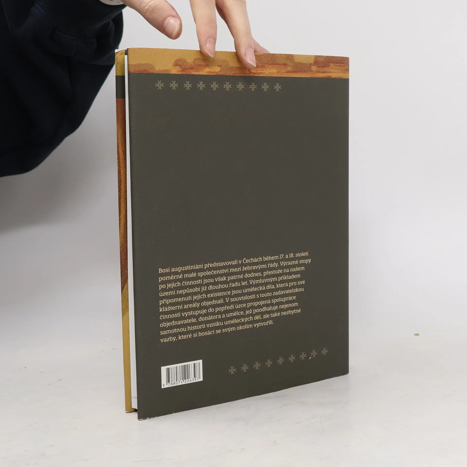 Bosí augustiáni v Čechách: jako objednavatelé uměleckých děl v 17. a 18. století. Bosí augustiniáni představovali v Čechách během 17. a 18. století mezi žebravými řády poměrně malé společenství. Výrazné stopy po jejich činnosti jsou však patrné dodnes, přestože na našem území nepůsobí již dlouhou řadu let. Výmluvným příkladem připomenutí jejich existence jsou umělecká díla, která pro své klášterní areály objednali. V souvislosti s touto zadavatelskou činností vystupuje do popředí úzce propojená spolupráce objednavatele, donátora a umělce, jež poodhaluje nejenom samotnou historii vzniku uměleckých děl, ale také nezbytné vazby, které si bosáci se svým okolím vytvořili.