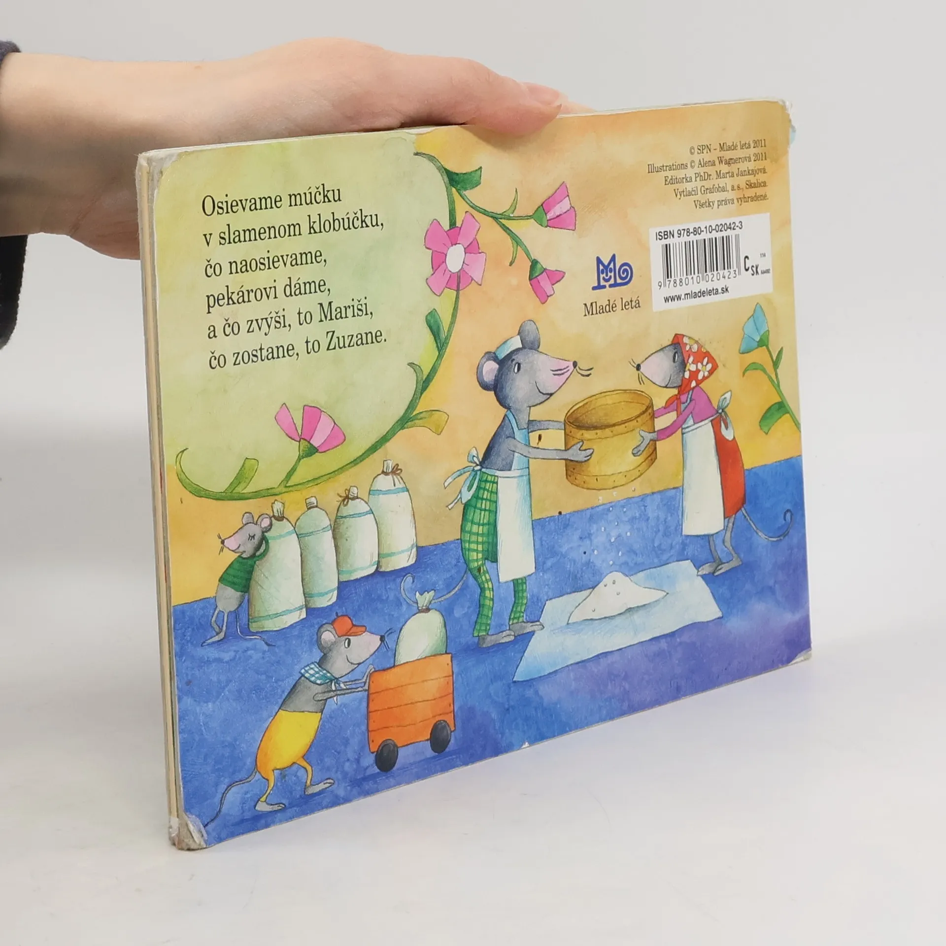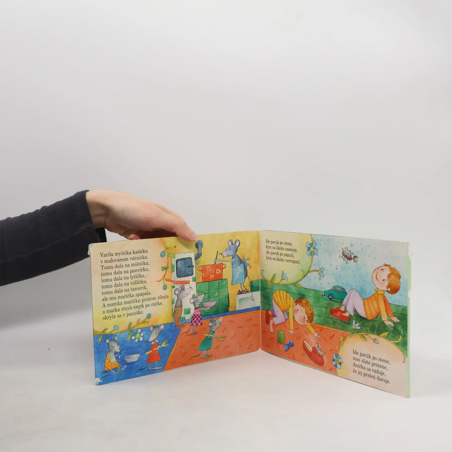 Ďalšie klasické leporelo zo série Žabiatko, tentoraz s ľudovými riekankami pre najmenších – Varila myšička kašičku, Naša mačka strakatá, Ide pavúk po stene, Osievame múčku... Riekanky sú ilustrované veselými obrázkami Aleny Wagnerovej. Skladačkové leporelo poslúži deťom aj ako hračka. 2. vydanie