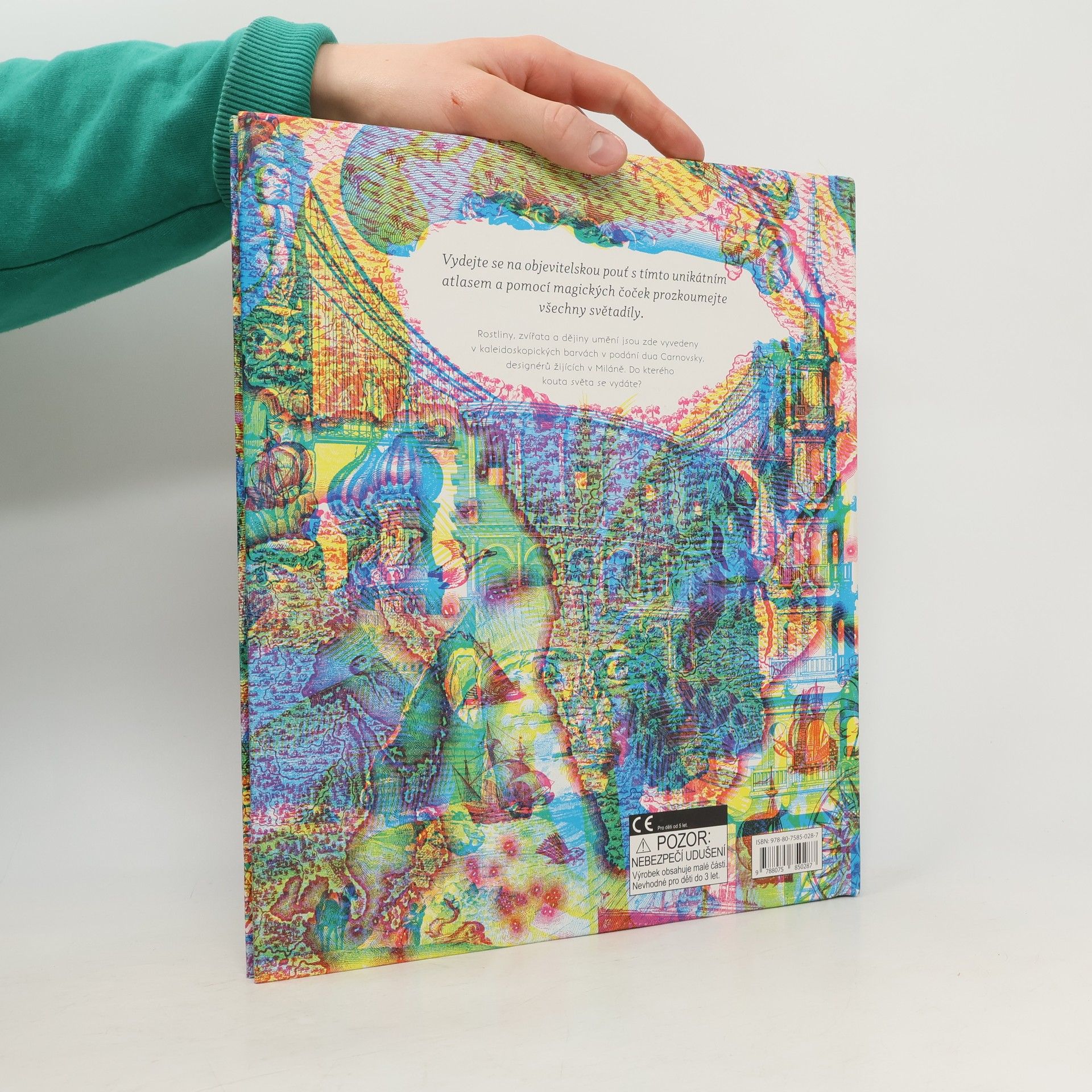 Vydejte se na objevitelskou pouť s tímto unikátním atlasem a pomocí magických čoček prozkoumejte všechny světadíly. Rostliny, zvířata a dějiny umění jsou zde vyvedeny v kaleidoskopických barvách v podání dua Carnovsky, designérů žijících v Miláně. Do kterého kouta světa se vydáte?