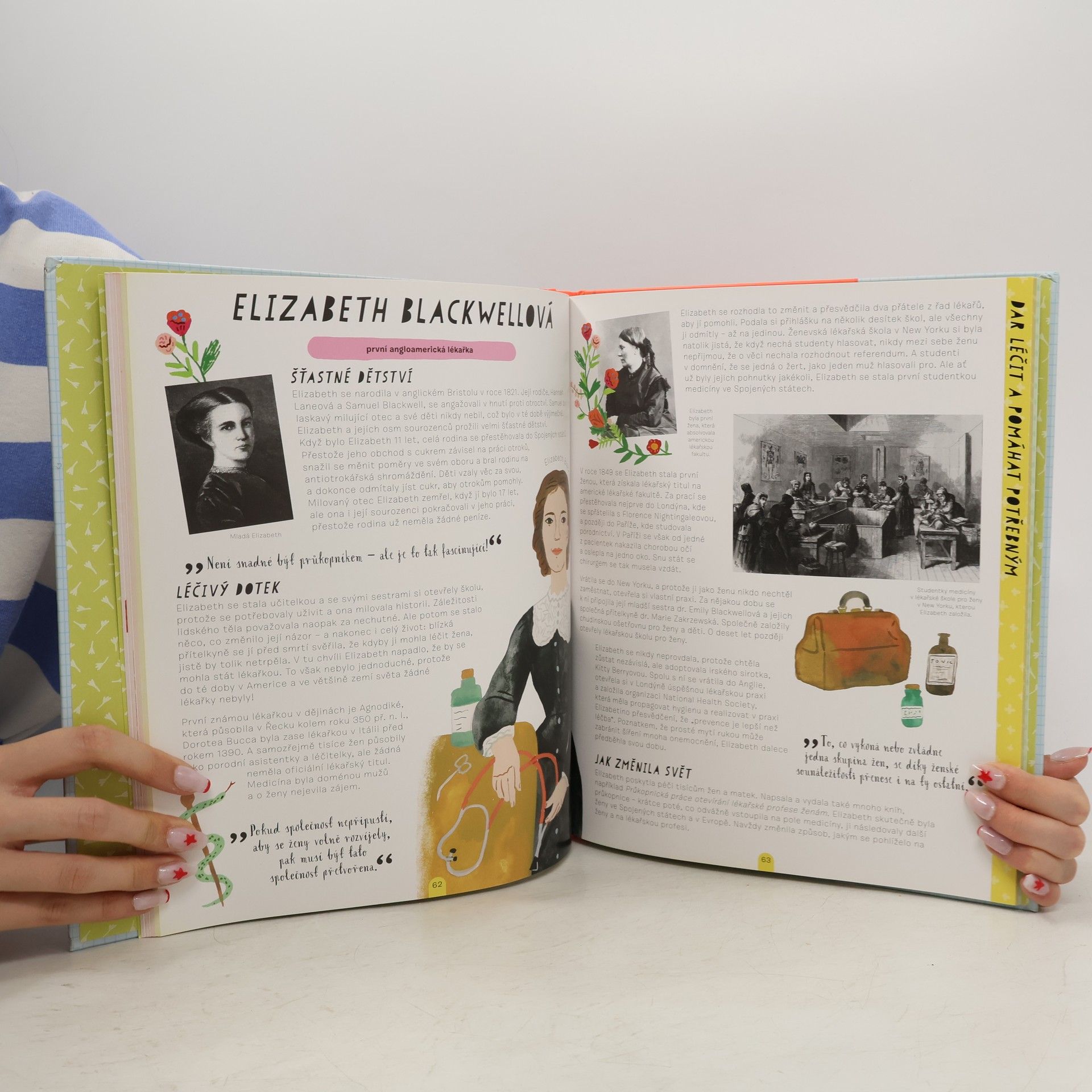 Zdálo by se, že dějiny většinou píší muži: mocní králové, neohrožení dobyvatelé, vítězní vojevůdci a velcí státníci. Ale po celou dobu naší existence se na chodu světa výrazně podílel i bezpočet dívek a žen a je načase, abychom si připomněli, že historii psali a píší nejen muži, ale také ženy! Tahle knížka vzdává hold padesáti skvělým ženám a dívkám z celého světa, napříč letopočty. Dokázaly totiž výjimečné věci, vzepřely se zavedeným pořádkům a společenskému očekávání a ukázaly, jak je možné měnit svět k lepšímu. Zatímco činy některých z nich byly po zásluze oceněny, jiné se uznání za svého života nedočkaly. Některé stanuly v čele národa nebo hnutí a vedly lidi směrem, který považovaly za správný, i když za své přesvědčení byly často vězněny a někdy zaplatily i životem. Jiné byly nadané umělkyně, které se zapsaly do dějin svými tvůrčími činy a silou osobnosti. Další z obdivuhodných žen zasvětily život pomoci potřebným. Vědkyně, o nichž tu budete číst, zase přispěly – i přes všeobecně rozšířené přesvědčení, že svět vědy je vyhrazený pouze mužům – k objasnění mnoha velkých záhad tohoto světa. A konečně se dočtete i o hrdinkách, které se nevzdaly svého přesvědčení a zásad ani tváří v tvář opravdu velkému zlu a nebezpečí. A to všechno proto, aby se na tomto světě v budoucnu žilo lépe. Máš také nějaký svůj sen? Změnit naděje a sny v realitu, otřást světem, občas obnáší i „zatřást“ sama sebou. Tak se neboj a jdi si za svým!