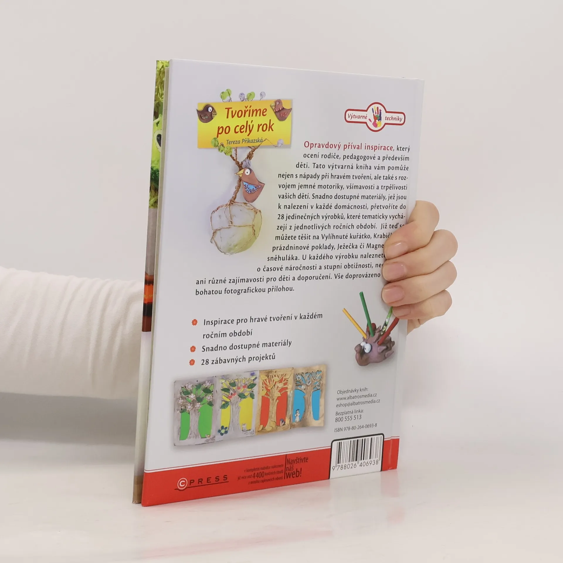 Opravdový příval inspirace, který ocení rodiče, pedagogové a především děti. Tato výtvarná kniha vám pomůže nejen s nápady při hravém tvoření, ale také s rozvojem jemné motoriky, všímavosti a trpělivosti vašich dětí. Snadno dostupné materiály, jež jsou k nalezení v každé domácnosti, přetvoříte do 28 jedinečných výrobků, které tematicky vycházejí z jednotlivých ročních období. Již teď se můžete těšit na vylíhnuté kuřátko, krabičku na prázdninové poklady, ježečka či magnetického sněhuláka. U každého výrobku naleznete údaje o časové náročnosti a stupni obtížnosti, nechybí ani různé zajímavosti pro děti a doporučení. Vše doprovázeno bohatou fotografickou přílohou.