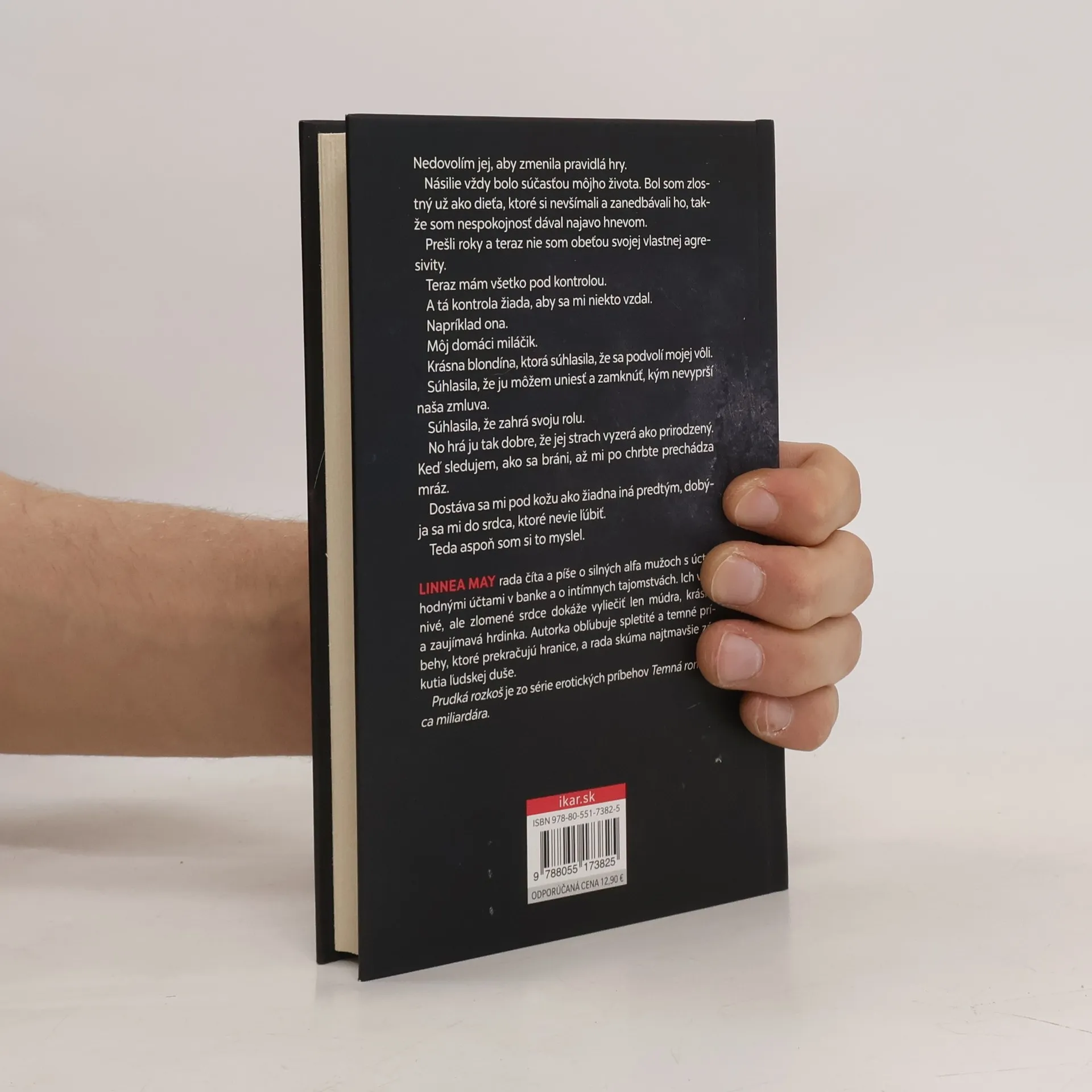 Nedovolím jej, aby zmenila pravidlá hry. Násilie vždy bolo súčasťou môjho života. Bol som zlostný už ako dieťa, ktoré si nevšímali a zanedbávali ho, takže som nespokojnosť dával najavo hnevom. Prešli roky a teraz nie som obeťou svojej vlastnej agresivity. Teraz mám všetko pod kontrolou. A tá kontrola žiada, aby sa mi niekto vzdal. Napríklad ona. Môj domáci miláčik. Krásna blondína, ktorá súhlasila, že sa podvolí mojej vôli. Súhlasila, že ju môžem uniesť a zamknúť, kým nevyprší naša zmluva. Súhlasila, že zahrá svoju rolu. No hrá ju tak dobre, že jej strach vyzerá ako prirodzený. Keď sledujem, ako sa bráni, až mi po chrbte prechádza mráz. Dostáva sa mi pod kožu ako žiadna iná predtým, dobýja sa mi do srdca, ktoré nevie ľúbiť. Teda aspoň som si to myslel.