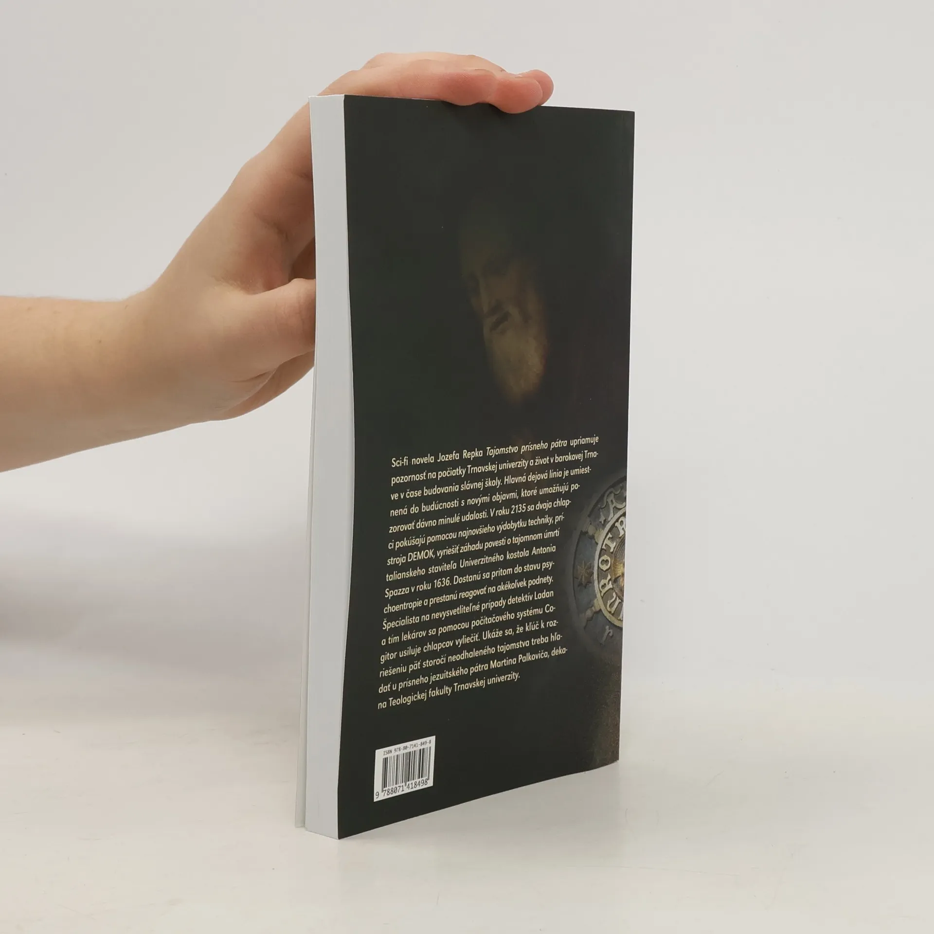 Sci-fi novela Jozefa Repka Tajomstvo prísneho pátra upriamuje pozornosť na počiatky Trnavskej univerzity a život v barokovej Trnave v čase budovania slávnej školy. Hlavná dejová línia je umiestnená do budúcnosti s novými objavmi, ktoré umožňujú pozorovať dávno minulé udalosti. V roku 2135 sa dvaja chlapci pokúšajú pomocou najnovšieho výdobytku techniky, prístroja DEMOK, vyriešiť záhadu povesti o tajomnom úmrtí talianskeho staviteľa Univerzitného kostola Antonia Spazza v roku 1636. Dostanú sa pritom do stavu psychoentropie a prestanú reagovať na akékoľvek podnety. Špecialista na nevysvetliteľné prípady detektív Ladan a tím lekárov sa pomocou počítačového systému Cogitor usiluje chlapcov vyliečiť. Ukáže sa, že kľúč k rozriešeniu päť storočí neodhaleného tajomstva treba hľadať u prísneho jezuitského pátra Martina Palkoviča, dekana Teologickej fakulty Trnavskej univerzity.