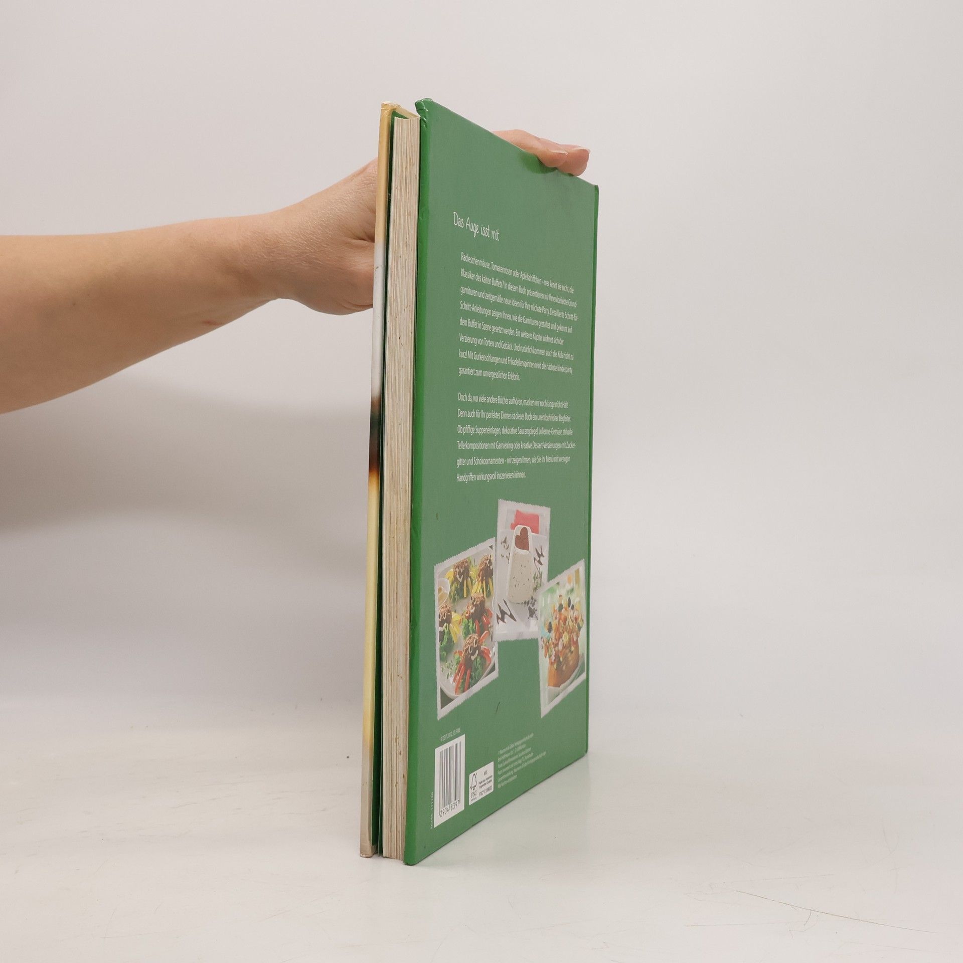 Das Auge isst mit. Radieschenmäuse, Tomatenrosen oder Apfelschiffchen - wer kennt sie nicht, die Klassiker des kalten Buffets? In diesem Buch präsentieren wie Ihnen beliebte Grundgarnituren und zeitgemäße, neue Ideen für Ihre nächste Party. Detaillierte Schritt-für-Schritt-Anleitungen zeigen Ihnen, wie die Garnituren gestaltet und gekonnt auf dem Buffet in Szene gesetzt werden. Ein weiteres Kapitel widmet sich der Verzierung von Torten und Gebäck mit Buttercreme, Marzipan, Schokolade & Co. Und natürlich kommen auch die Kids nicht zu kurz! Mit Gurkenschlangen, Frikadellenspinnen und unseren gruseligen Wurstfingern wird die nächste Kinderparty garantiert zum unvergesslichen Erlebnis. Doch da, wo viele andere Bücher aufhören, machen wir noch lange nicht Halt! Denn auch für Ihr perfektes Dinner ist dieses Buch ein unentbehrlicher Begleiter. Ob pfiffige Suppeneinlagen, dekorative Saucenspiegel, Julienne-Gemüse, stilvolle Tellerkompositionen mit Garnierring oder kreative Dessert-Verzierungen mit Zuckergitter und Schokoornamenten - wir zeigen Ihnen, wie Sie Ihr Menü mit wenigen Handgriffen wirkungsvoll inszenieren können. So nehmen Ihre Gäste gewiss doppelt so gerne Platz!