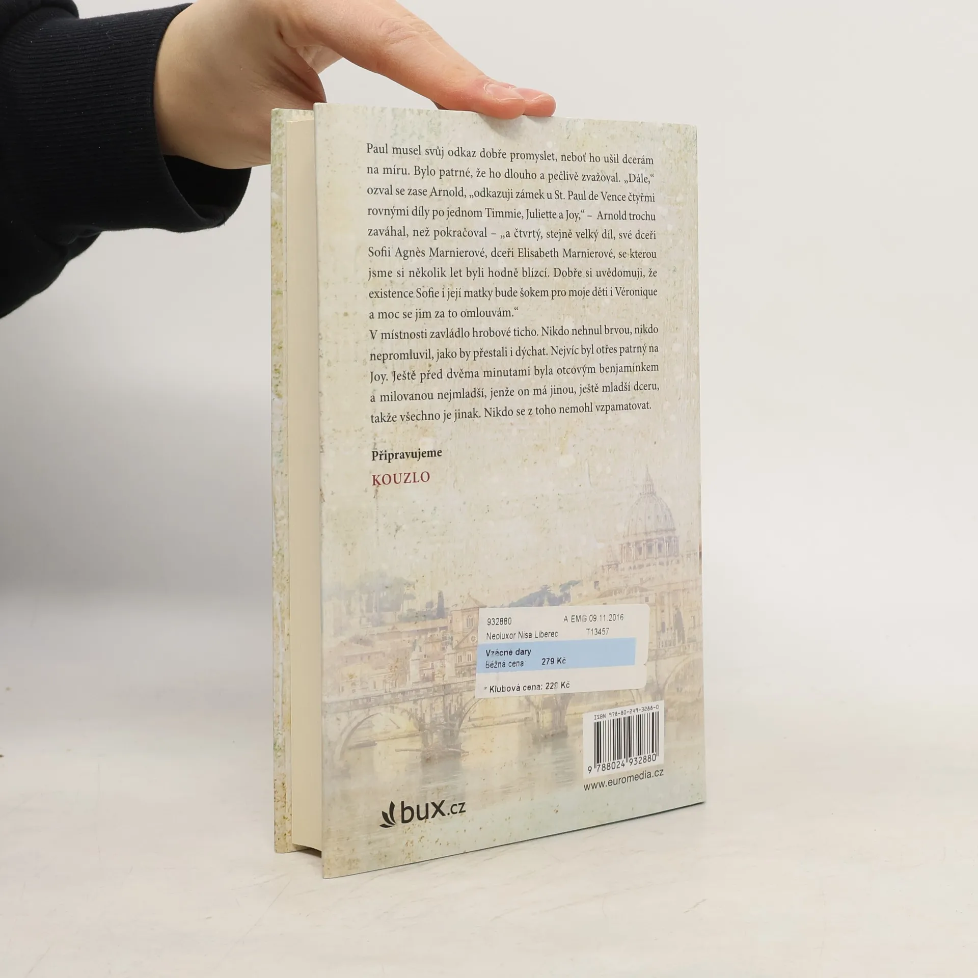 Veronique Parkerová je oddanou matkou a svůj život zasvětila svým třem dcerám. Je jim o to blíž, že je rozvedená a vychovává je sama. Ale když její bývalý manžel zemře a zanechá svým dcerám neuvěřitelné dědictví, nic už nebude jako dřív. Vzácné dary, mezi nimiž je tajemný obraz i zámek v jižní Francii, vedou k šokujícímu odhalení z minulosti. Veronique a její dcery se vydají na úžasnou cestu přes Řím, Paříž, New York a Benátky a během ní se jejich osud změní víc, než si uměly představit.