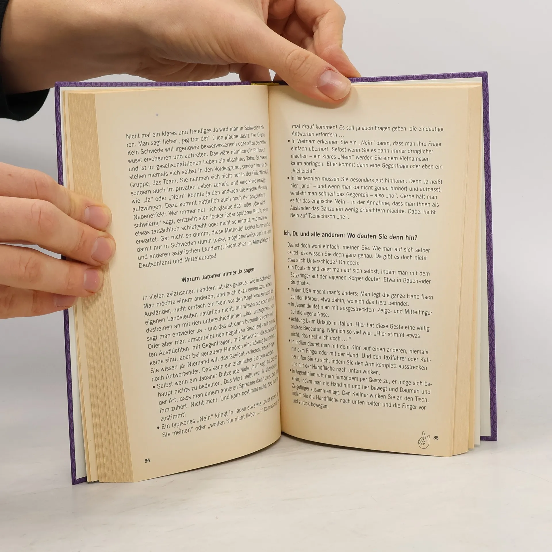 Damit man in der Fremde nicht in Fettnäpfchen tritt. Reisen ist Teil unseres Lebens und damit auch die Begegnung mit Menschen aus anderen Ländern. Haben Sie gewusst, dass man dabei, selbst bei unseren europäischen Nachbarn, allerhand verkehrt machen kann? Das beginnt mit einfachen Gesten - Kopfschütteln für ein Ja, Kopfnicken für ein Nein; einen „Vogel“ gezeigt zu bekommen kann heißen, dass der andere einen für richtig clever hält. Natürlich machen die Fettnäpfchen beim Essen nicht Halt - Geräusche dabei sind nicht immer verpönt und die „falsche“ Haltung des Bestecks kann Verwunderung auslösen. Und dass die Wahl eines bestimmten Desserts eine klare Aufforderung ist, den Abend im Bett zu beenden, kann zu wirklich peinlichen Missverständnissen führen. Davor schützen die Hinweise in diesem Buch, das voller Überraschungen steckt.