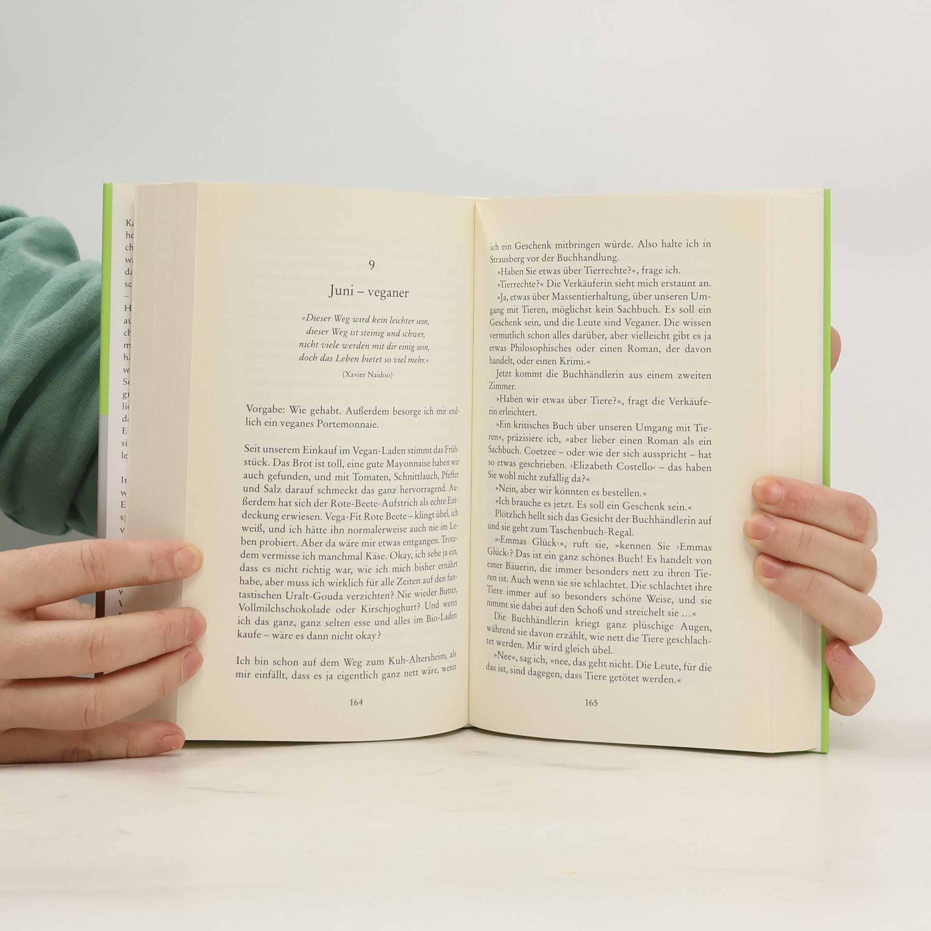 Lebt es noch oder isst du es schon? Ein Selbstversuch. Karen Duve war nicht gerade gesundheitsbewusst und kaufte alles von Bratwürsten bis Gummibärchen. Doch als sie mit jemandem zusammenzog, der den Spitznamen Jiminy Grille erhielt, begann sie, ihre Essgewohnheiten zu hinterfragen. Jiminy kritisierte ihre Wahl der „Grillhähnchenpfanne für 2,99“, was Karen dazu brachte, über das Leben der Tiere nachzudenken, die für solche Produkte leiden mussten. Sie stellte sich grundlegende Fragen: Darf man Tiere essen? Wenn nicht, warum dann Pflanzen? Wo beginnt menschliche Empathie, und was sind wir bereit, für andere Lebewesen zu opfern? Um Antworten zu finden, testete Karen verschiedene Ernährungsweisen mit moralischem Anspruch: biologisch-organisch, vegetarisch, vegan und schließlich frutarisch, bei dem sie nur das aß, was Pflanzen freiwillig abgeben. Während dieser Zeit setzte sie sich intensiv mit den dahinterstehenden Weltanschauungen auseinander und führte hitzige Diskussionen mit Jiminy Grille. Kurz vor der Veröffentlichung des Buches traf sie eine wichtige Lebensentscheidung über ihre zukünftige Ernährung und Lebensweise. Mit ihrer typischen, trockenen Komik beleuchtet sie die Frage, wie viel Genuss wir auf Kosten anderer zulassen können.