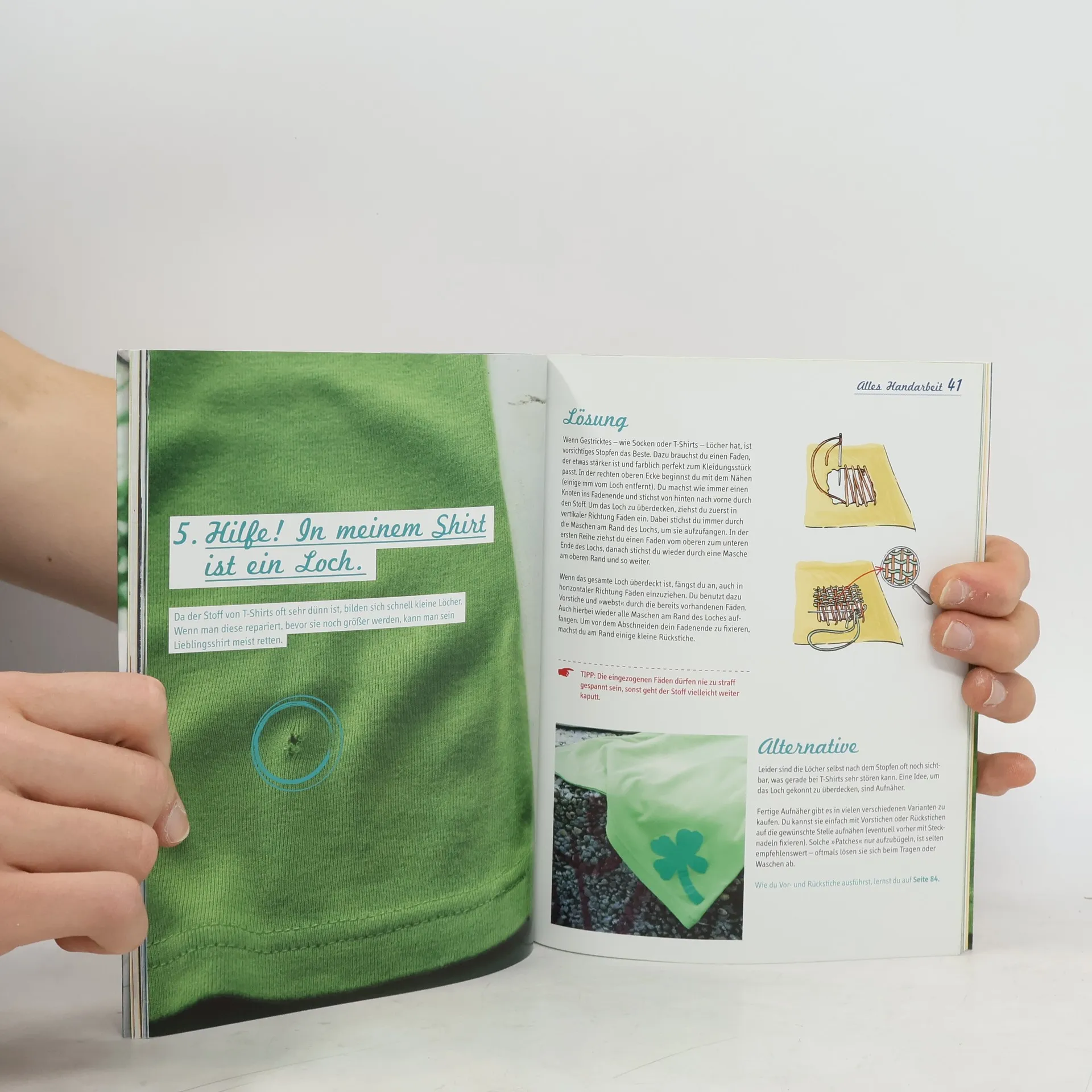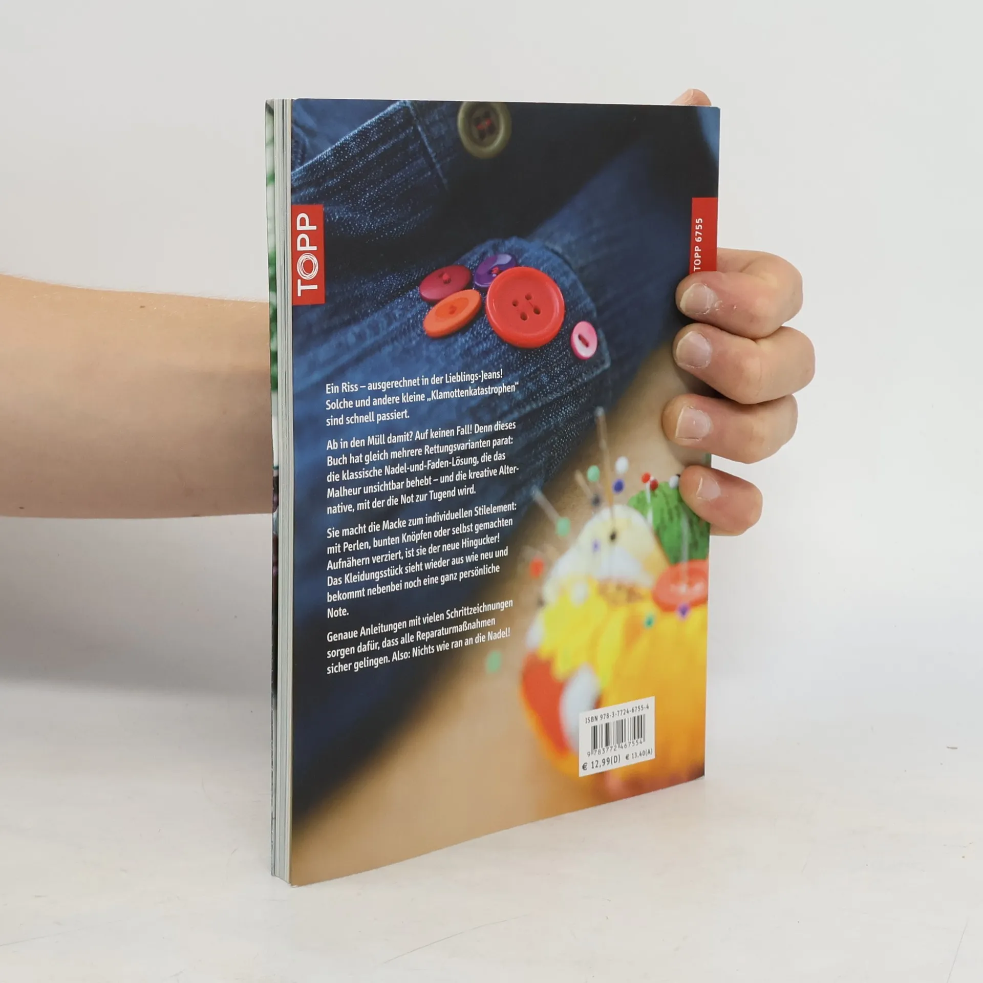 Einfache Repair-Ideen für zerschlissene Lieblingsstücke. Kleiderkatastrophen beheben: professionell & individuell. Mehrere kreative Lösungen zu einem Problem: professionelle „Schul-Methode“ plus eine oder mehrere unkonventionelle Techniken. Unterhaltsames Layout, junge Bildsprache und zahlreiche Schritt-Illustrationen. Kreativ-Paperback, 96 Seiten, 17 x 22 cm